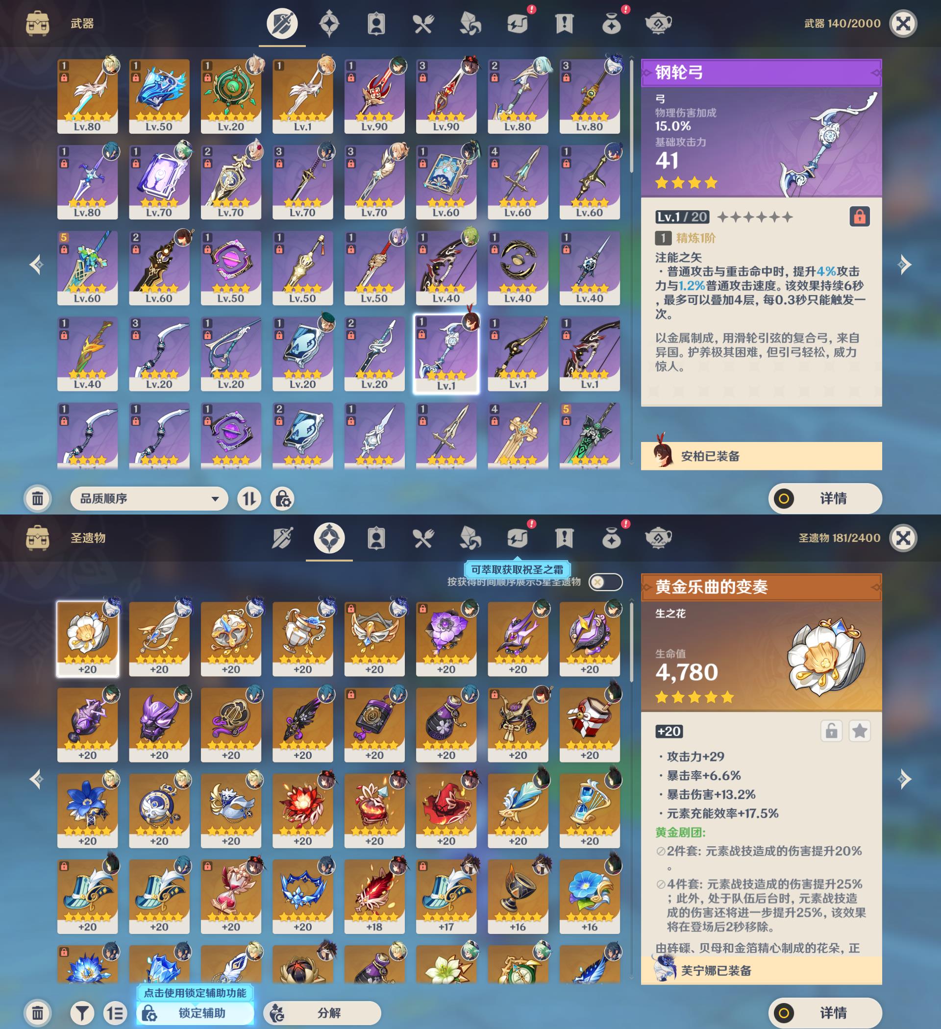 【YSN2430】55级/15黄/女主/10个五星角色/4个五星武器/芙宁娜/魈/胡桃/赛诺/1命提纳里/琴/闲云/恰斯卡/刻晴/莫娜/风鹰剑/万世流涌大典/碧落之珑