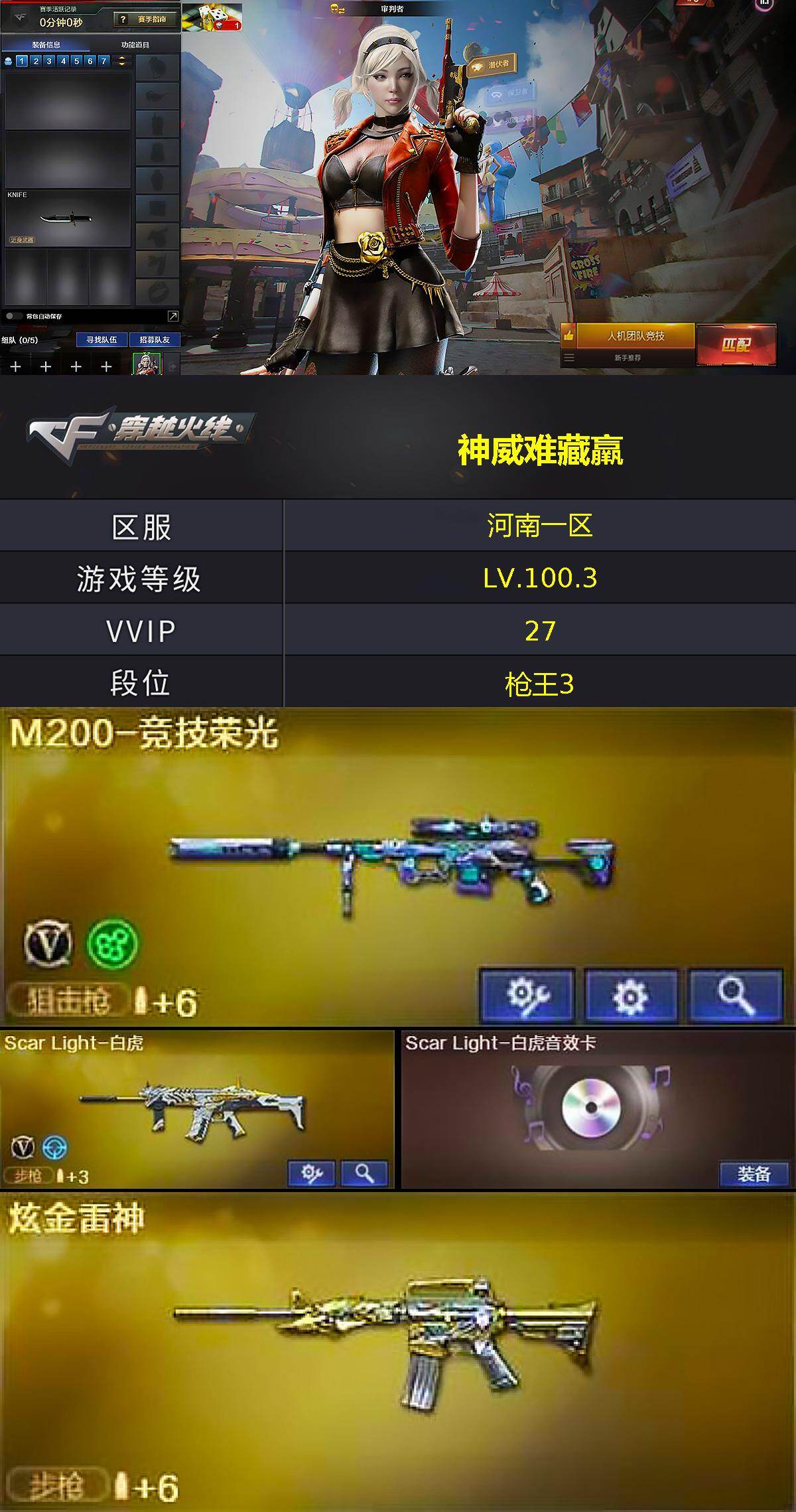 河南一区-32V-5王者武器数-4炫金武器数【热门武器】: