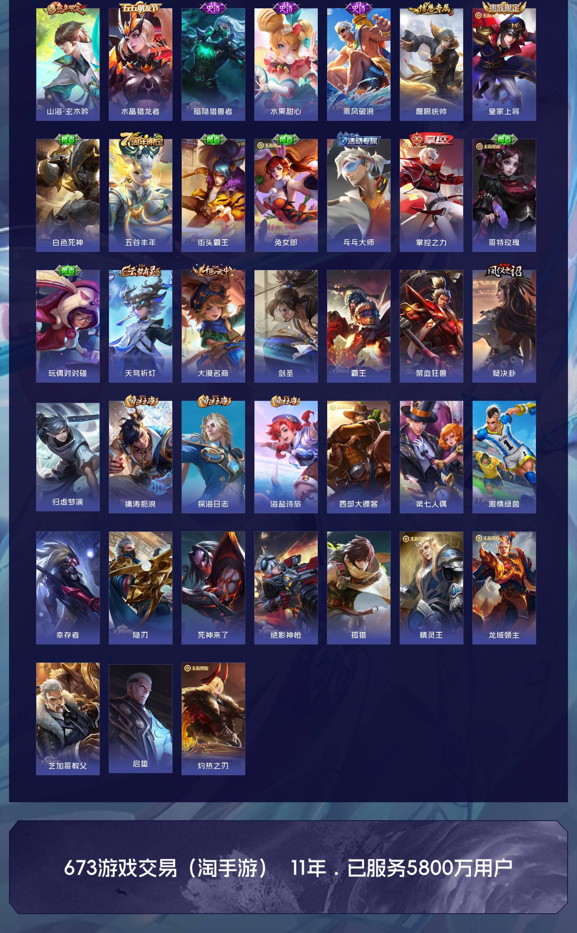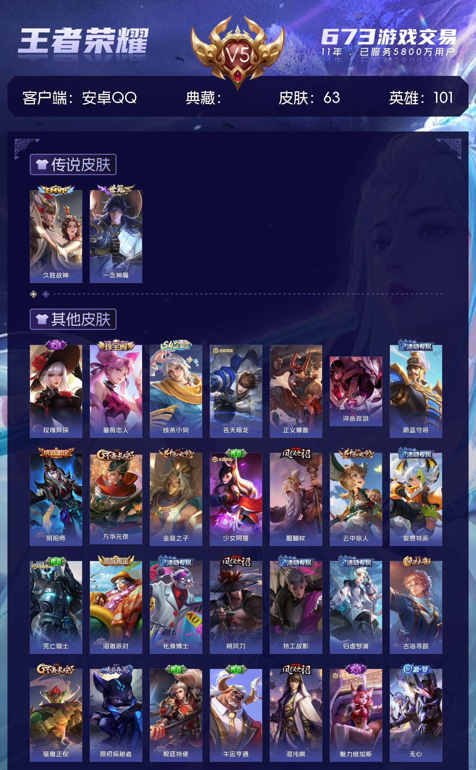 V5 皮肤63 英雄101 永恒钻石 传说2 其他皮肤66