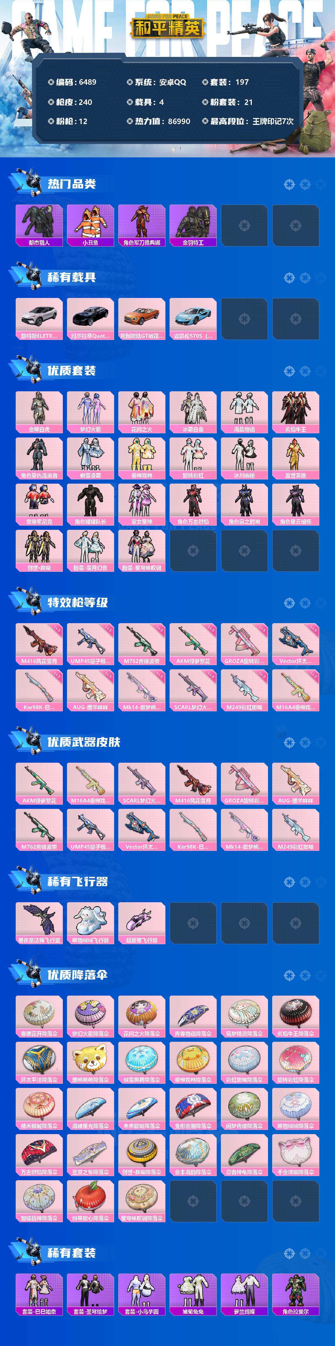 【6489】21粉装-12特效枪-4载具-86990热力值-7印记-197套装