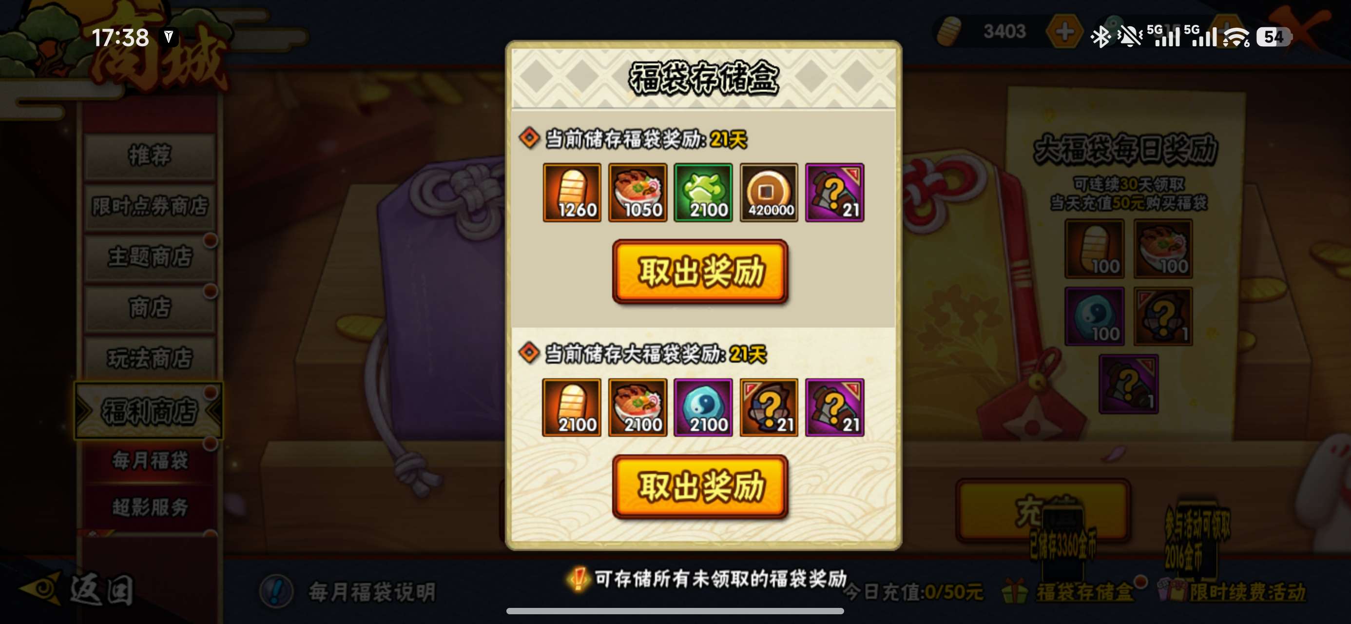 理财已经买了 还有一些金币,副本的很多资源还没领