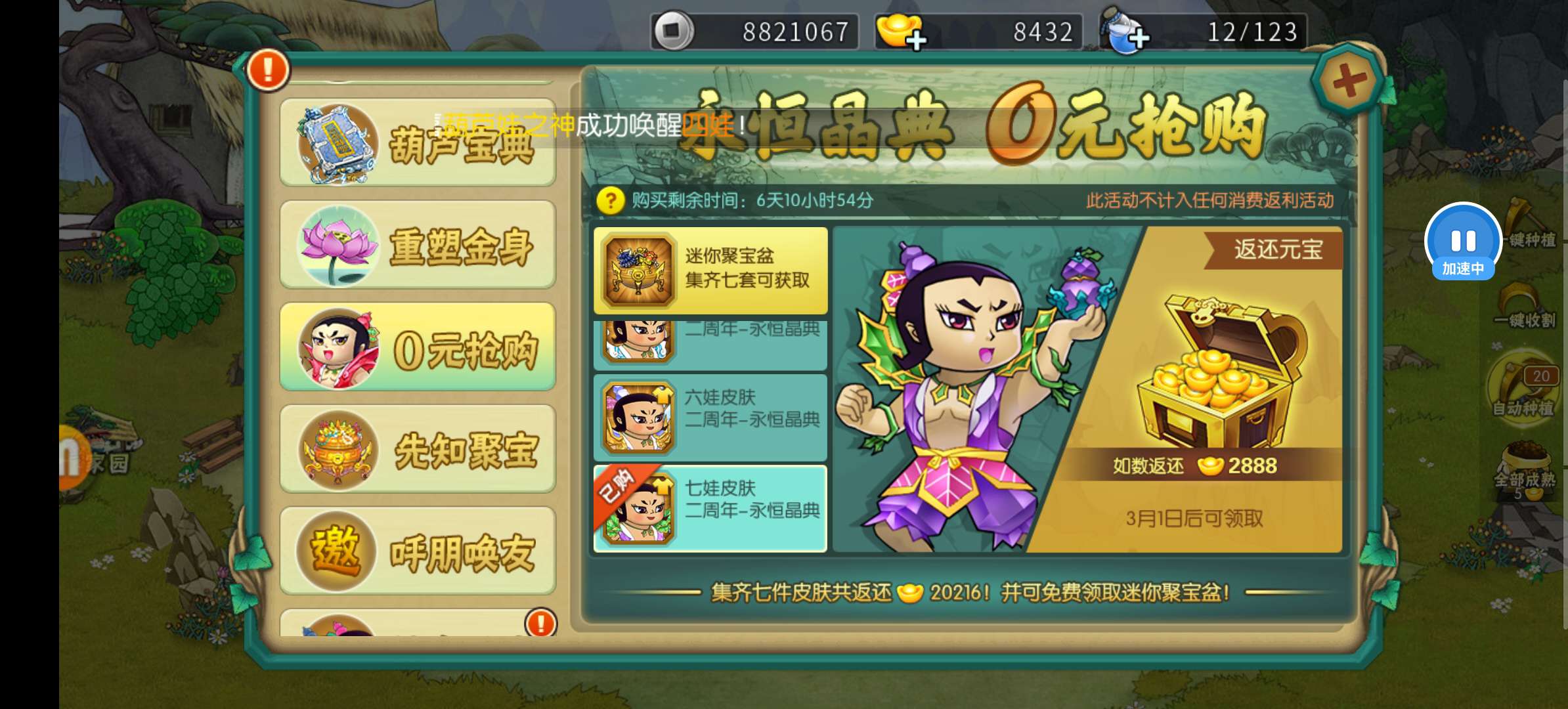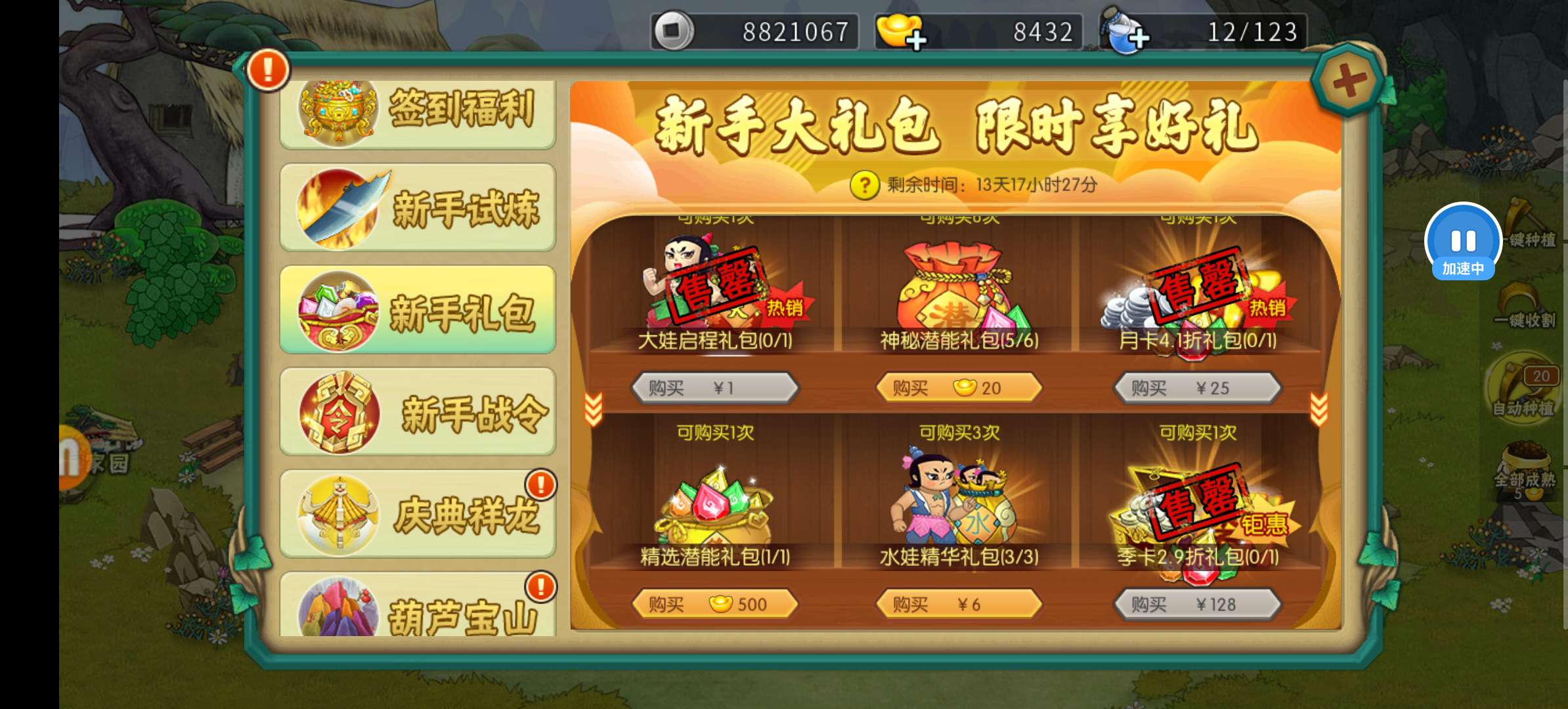 新区第1天,榜一,该买的全买了,区有4个v5,一些元宝没领,有13000左右元宝看图,上学了 没空玩