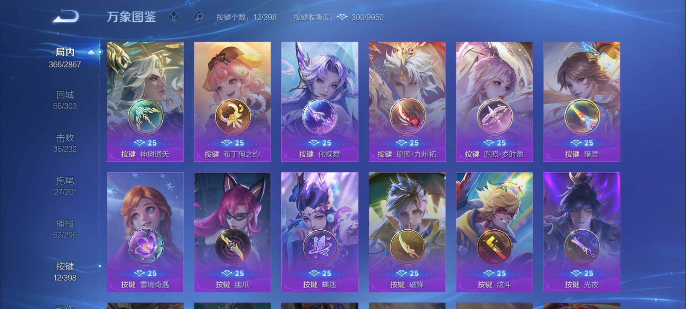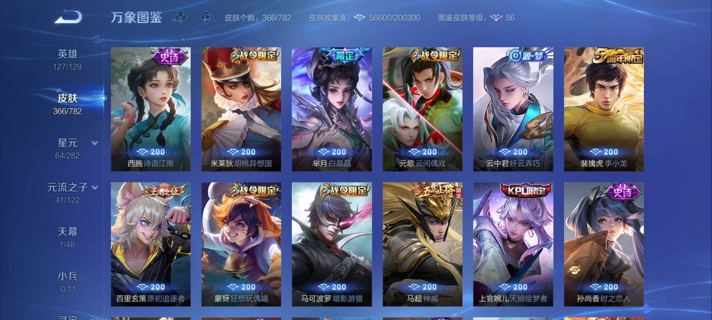 /可换绑【捡漏V9精品高性价比号·贵族积分15万·双典藏·绯月行·蛇年澜·李逍遥·时雨天司·祈雪灵祝·关羽武圣·神威·神奇女侠·多传说限定号】幸运值270 12按键,2星传说,16王者印记,满级铭文,可二次CD17463,安卓Q-V9-366皮肤-2典藏皮肤-31传说-114史诗【英雄全皮】:达摩全皮,雅典娜全皮,狂铁全皮,影全皮【荣耀典藏】:孙悟空全息碎影,孙尚香杀