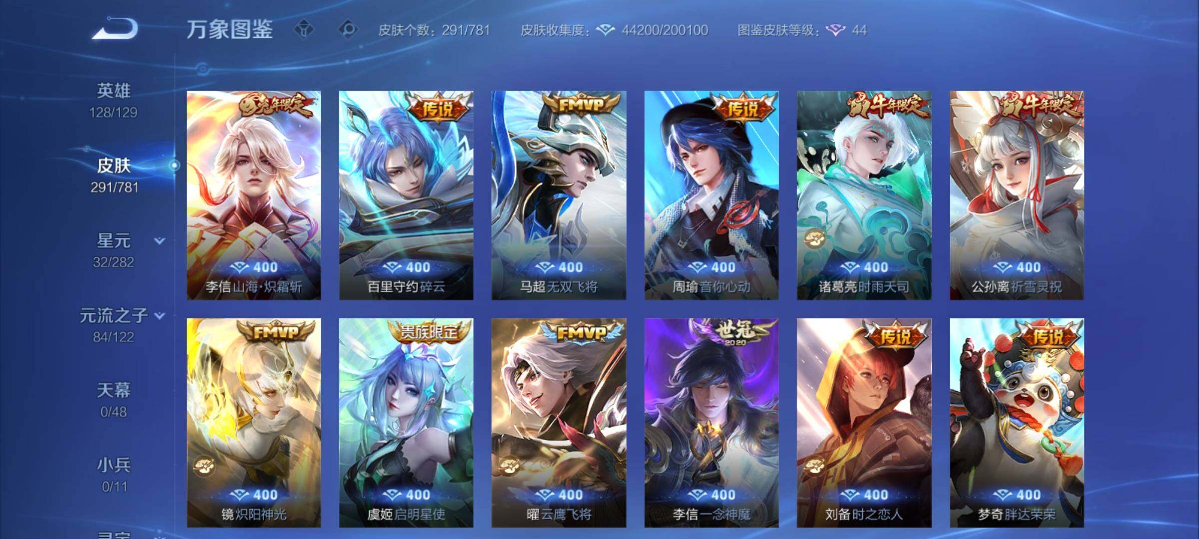 可换绑【V8捡漏高性价比·李白典藏·蛇年女娲·浮生妄·画中仙·兔年李信·时雨天