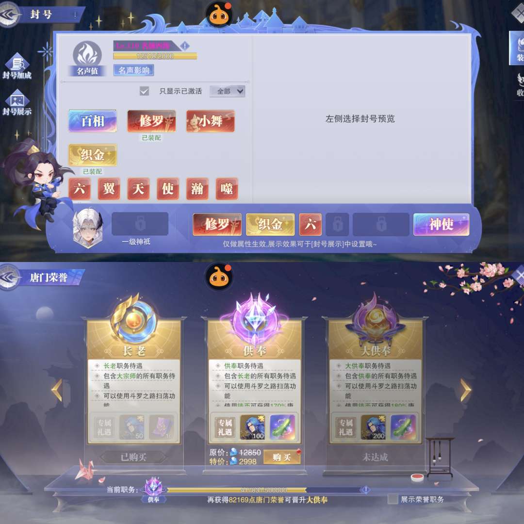 69亿战力。69级。供奉。红5光暗大雪19sp。百相 修罗 织金 小舞 神使称号。至臻皮婚纱小舞