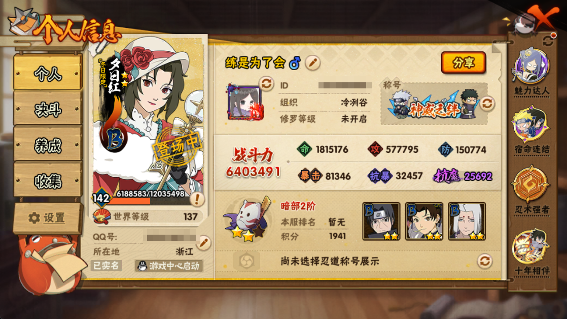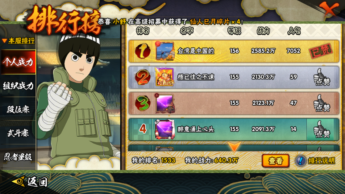 (可转苹果)640W战力舍人破面六尾15S+小孩31A战力6