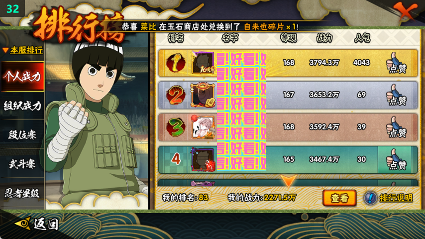 (可转苹果)2271w三代风+止水36s+青水49A战力22