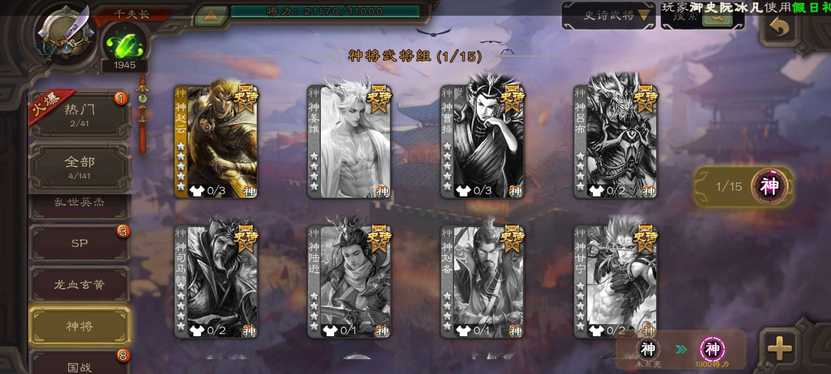 史诗武将数量: