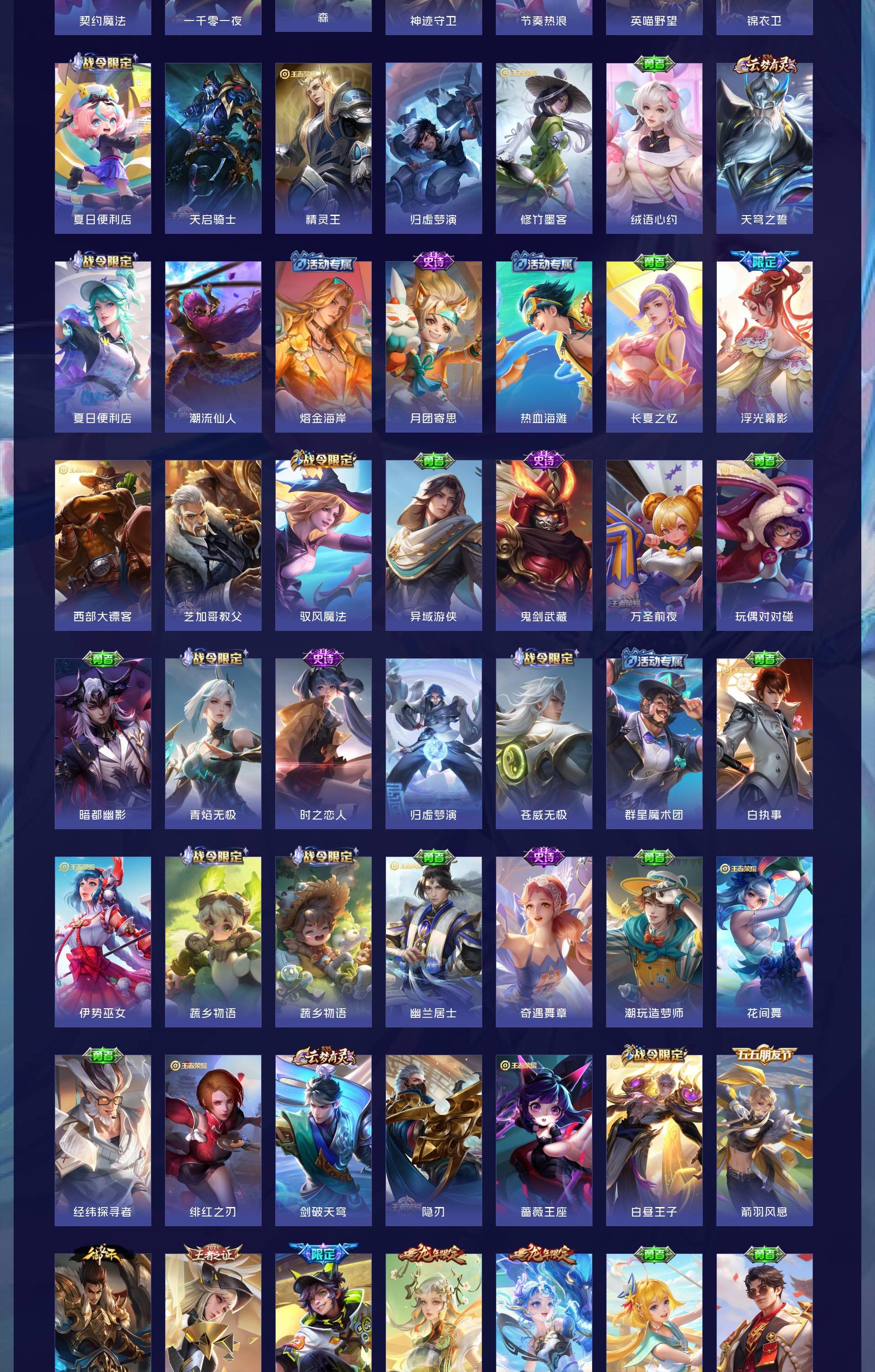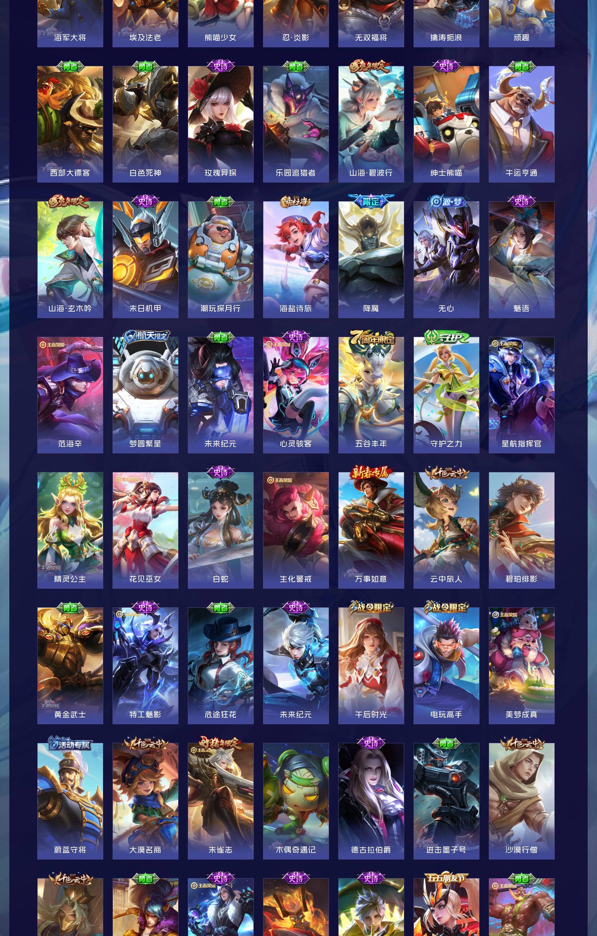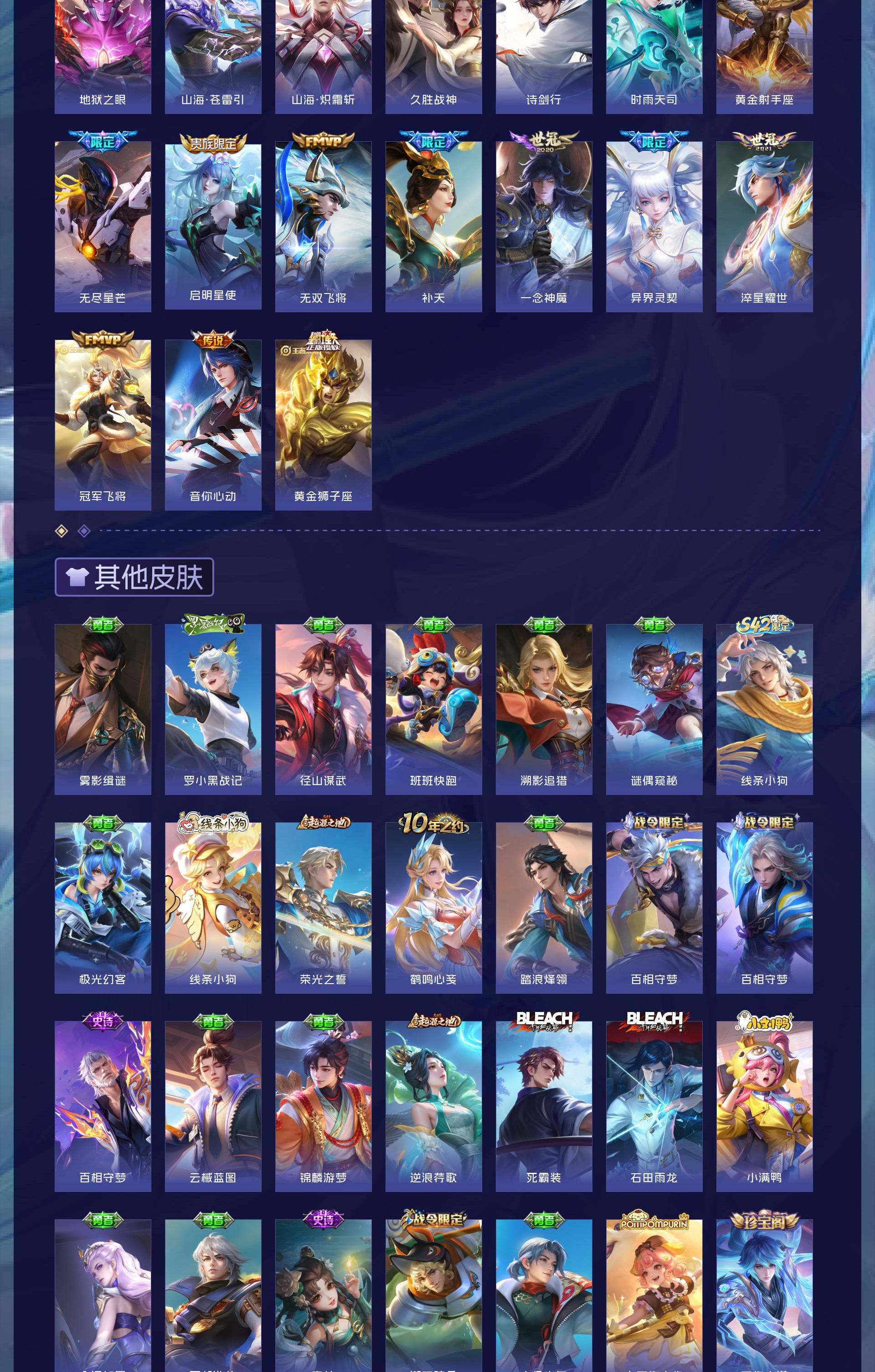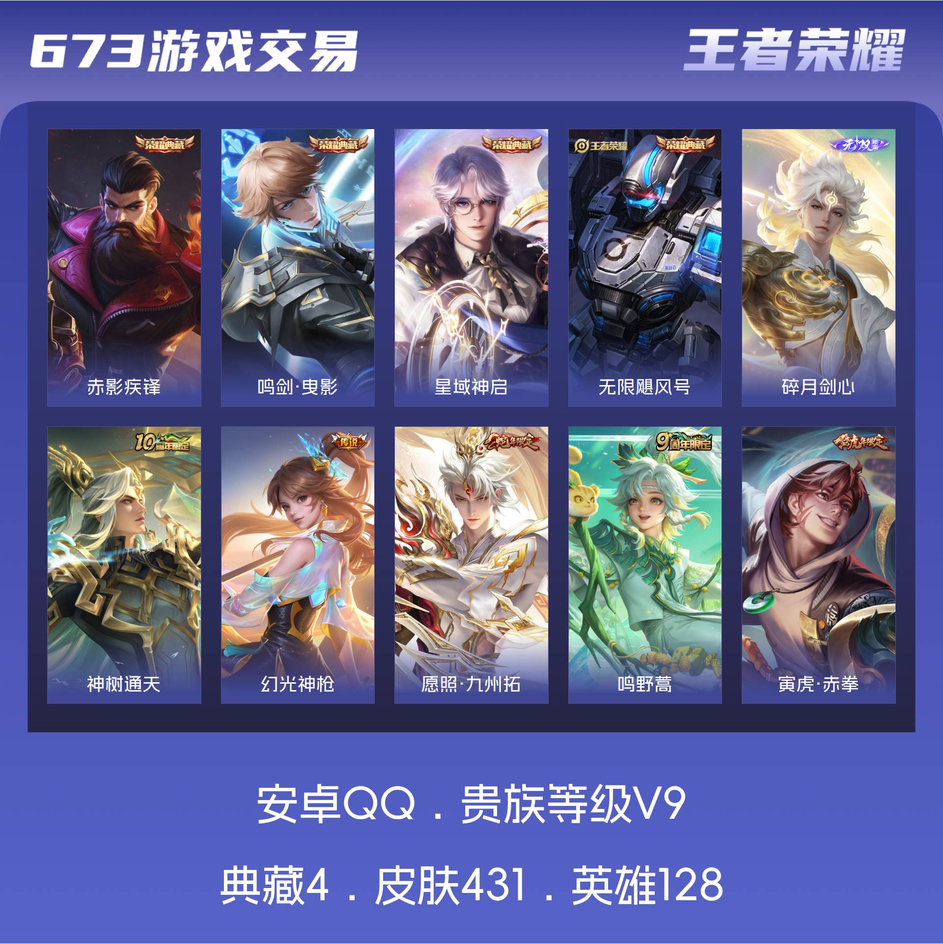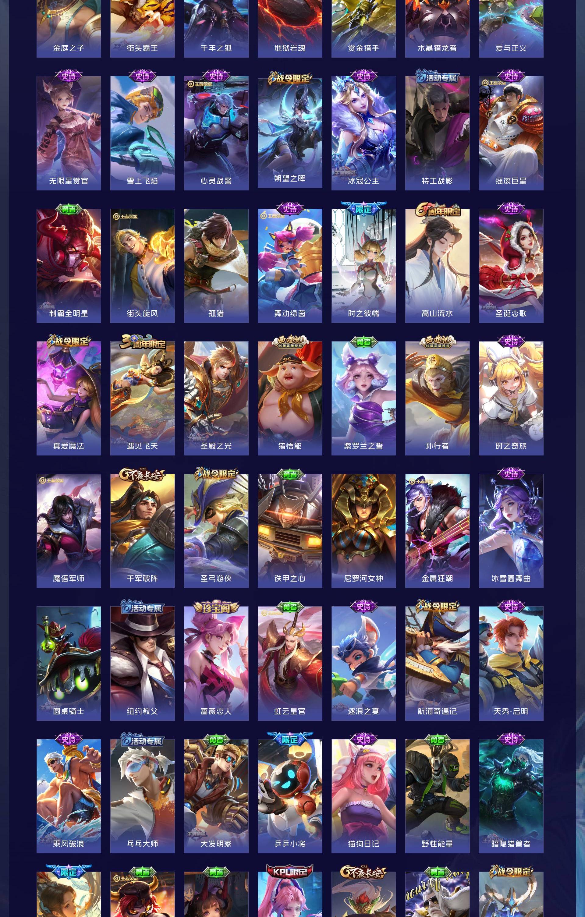 V9 皮肤431 英雄128 最强王者 荣耀典藏4 无双皮肤1 传说31 其他皮肤401