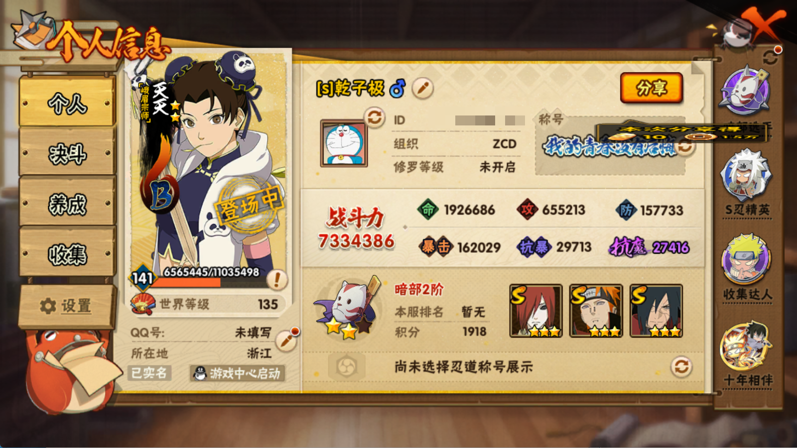 (可转苹果)733W战力 五影斑 紫狗 桃式13S+新水 新春沙娃3个198直购30A+熊猫万蛇通灵