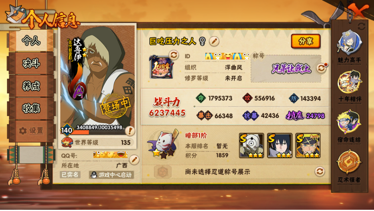 623w战力白面紫狗长门9s+1个198直购a24a战力62