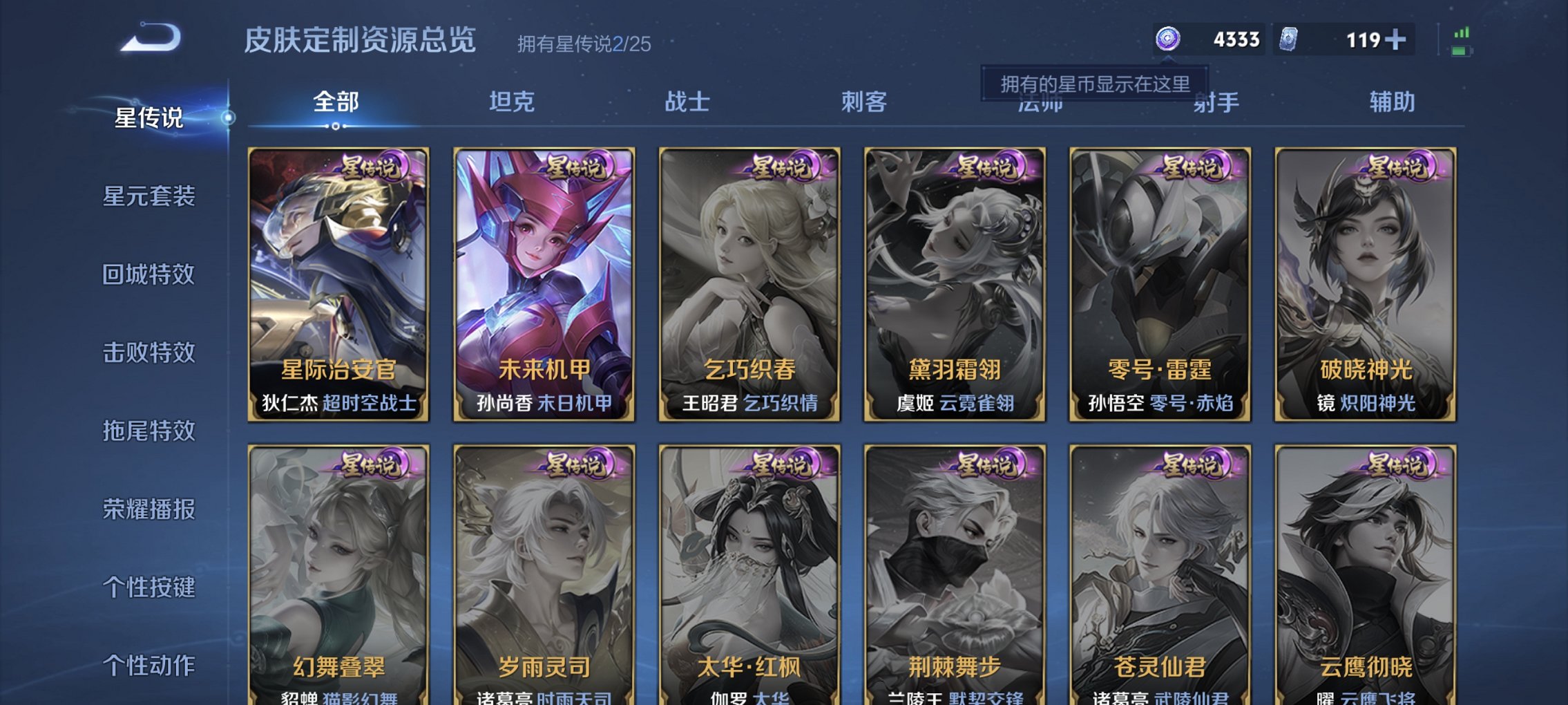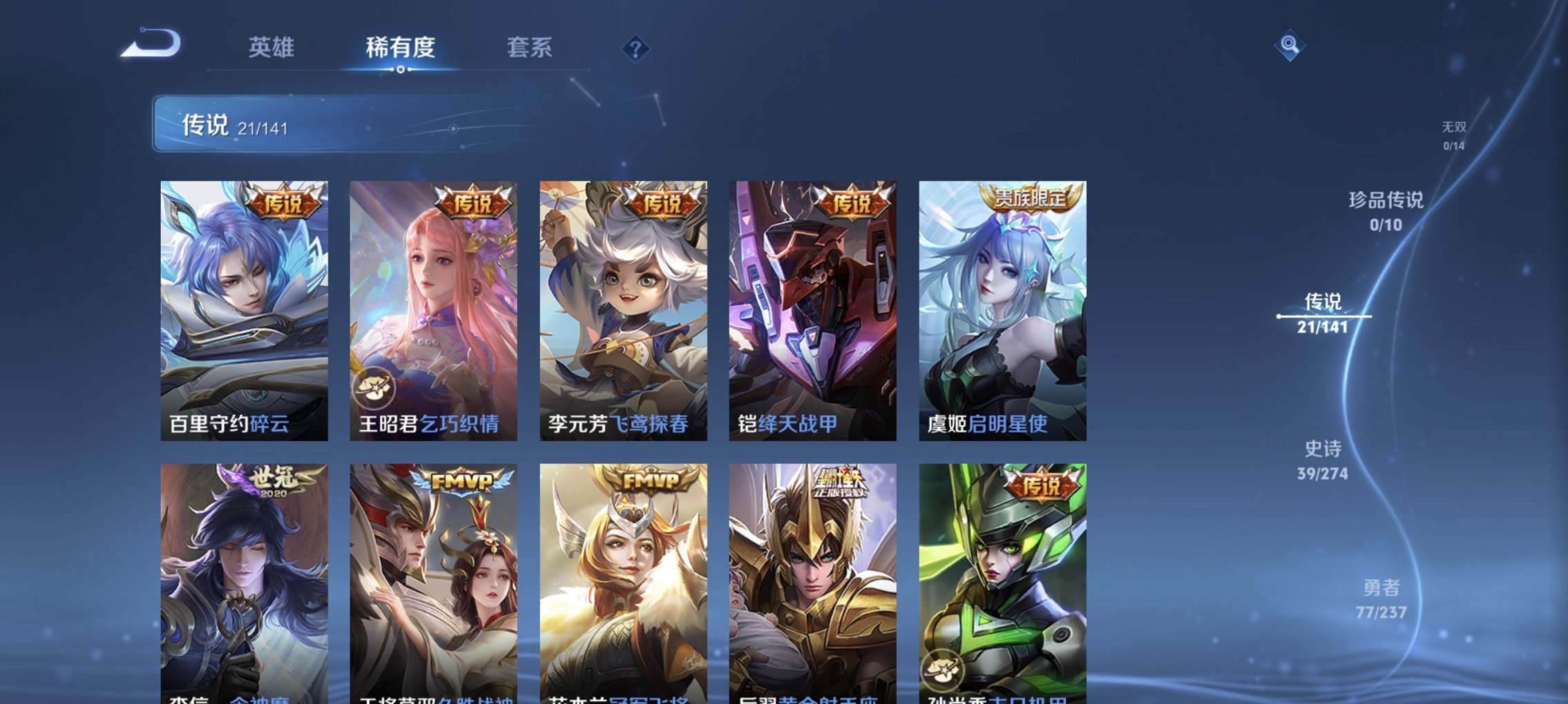21传说173皮肤1水晶2星元 -128英雄-173皮肤