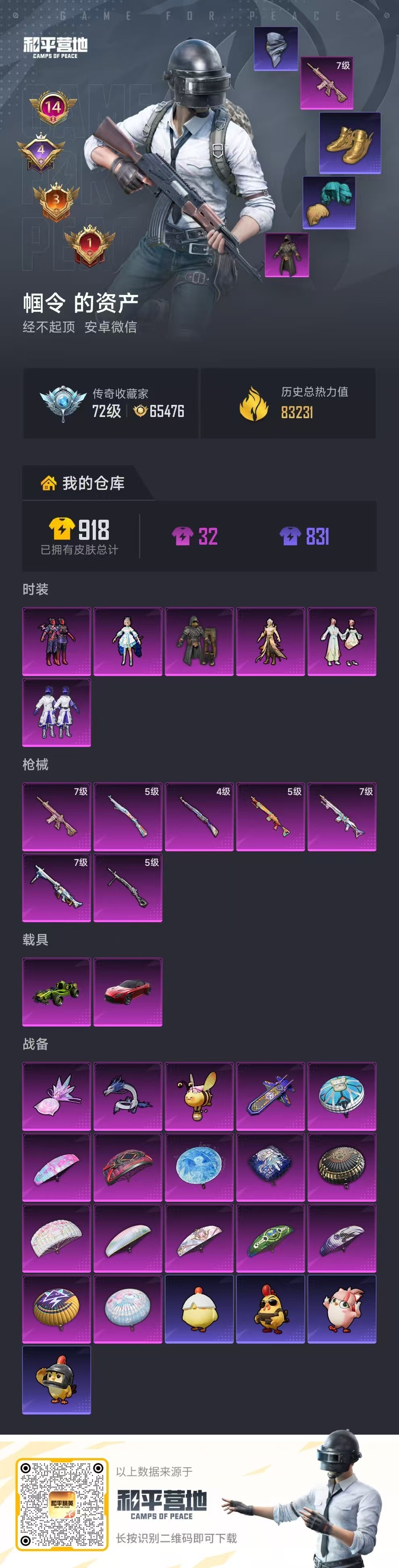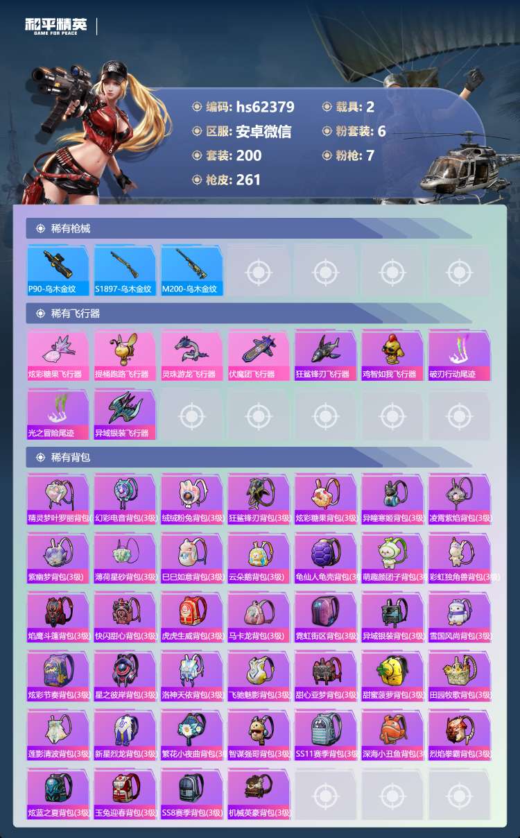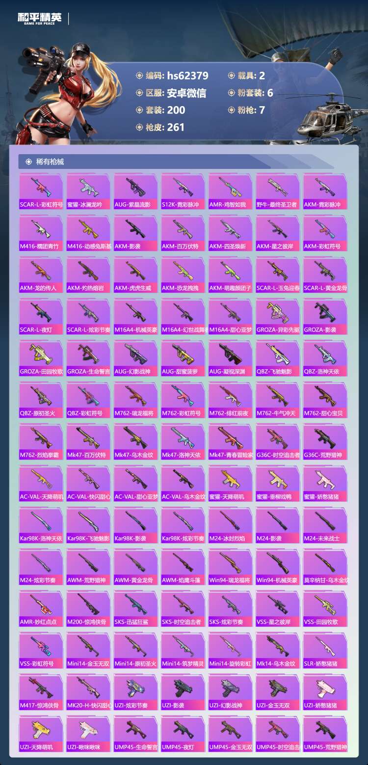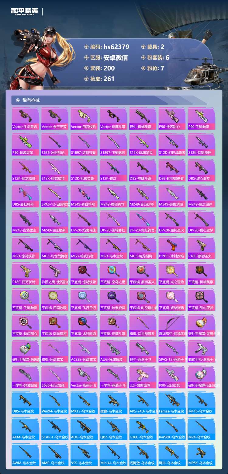 hs62379 安卓微-14王牌印记-6粉装-7特效枪-2载具-83231热力值-200套装-26