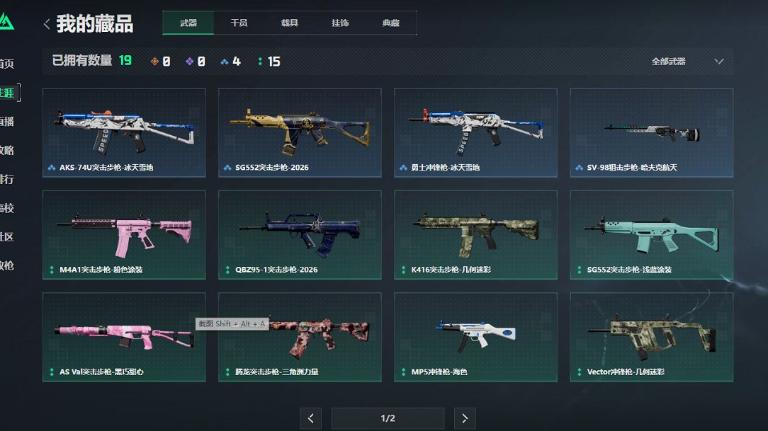 【枪皮】 QBZ191突击步枪-三角洲力量 M4A1突击步枪-粉色涂装 SG552突击步枪-浅蓝涂装 K416突击步枪-几何迷彩 SV-98狙击步枪-星链科技 SV-98狙击步枪-红色涂装 MP5冲锋枪-海色 Vector冲锋枪-几何迷彩 M1014霰弹枪-海浪