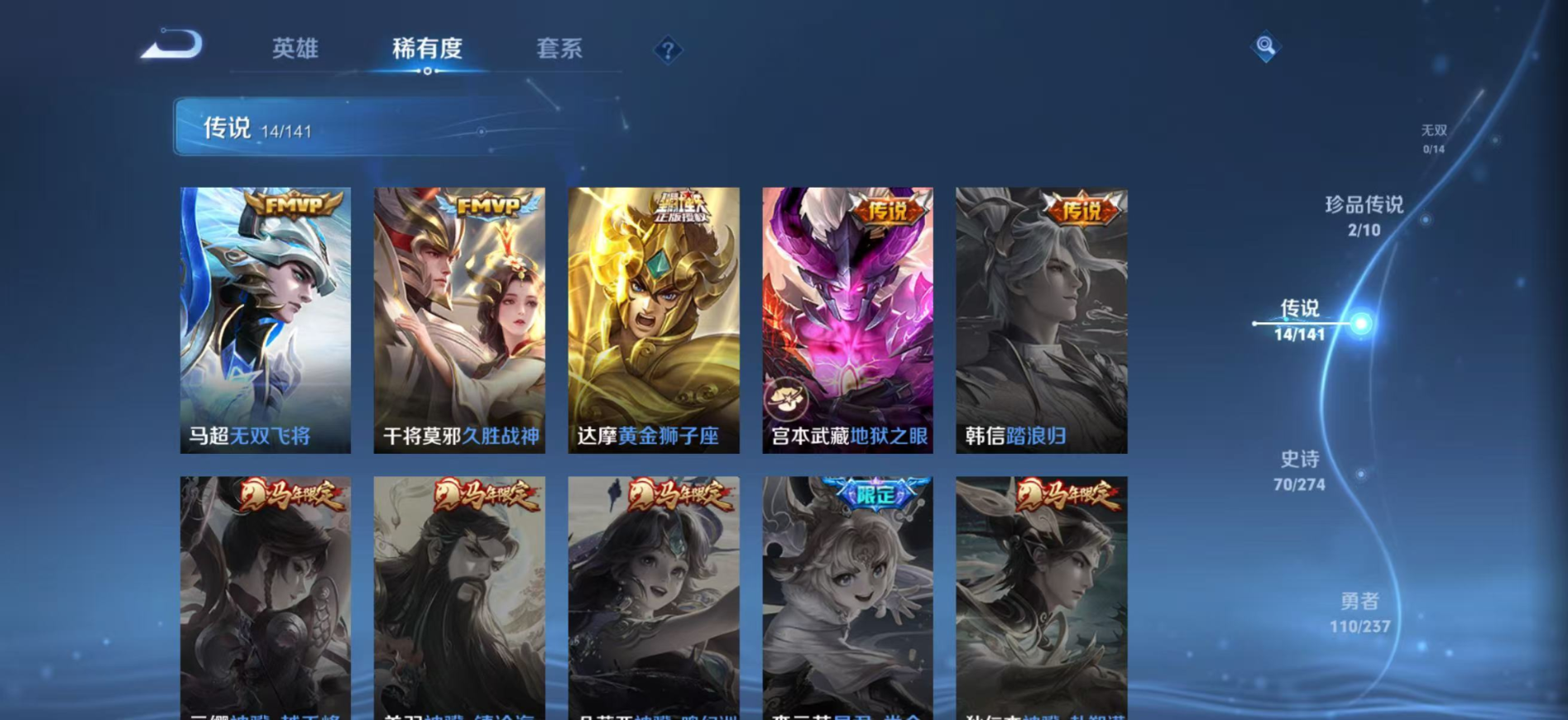 128英雄-219皮肤-苹果QQ/至尊星耀/超值v7皮肤号(怪盗基德 时之奇旅 神骥 马超新年 弑枪猎影)/219皮肤/128英雄/【1 典藏皮肤】弑枪猎影 韩信/【2 珍品传说】怪盗基德 马可波罗,时之奇旅 孙策,/【14 传说皮肤】碎云 百里守约,逐花归海 澜,无双飞将 马超,神骥·逐星野 马超,地狱之眼 宫本武藏,怒海麟威 吕布,黄金狮子座 达摩,久胜战神 干将莫邪,乘龙·铭钟鼎 赵