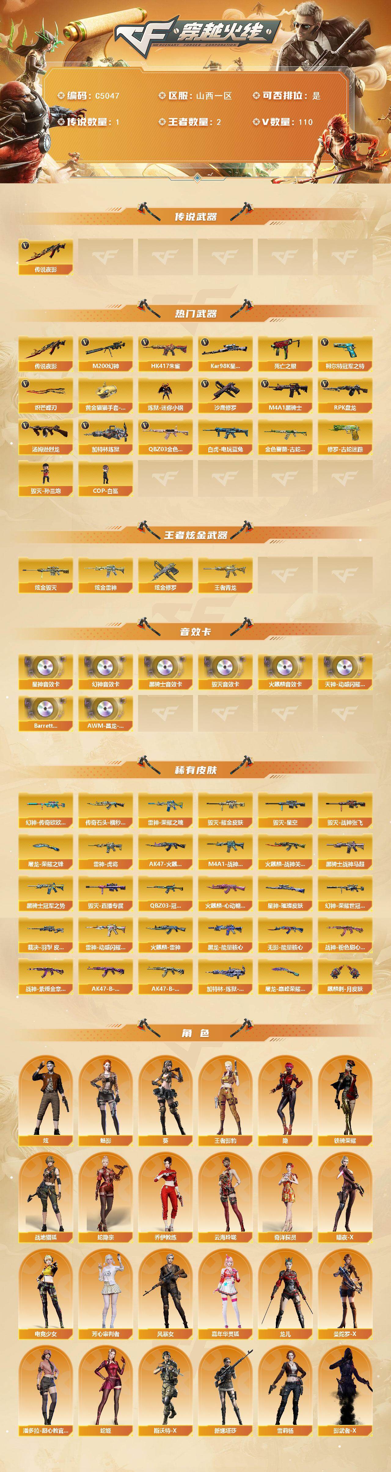 【C5047】山西一区-105V-2王者武器数-3炫金武器数