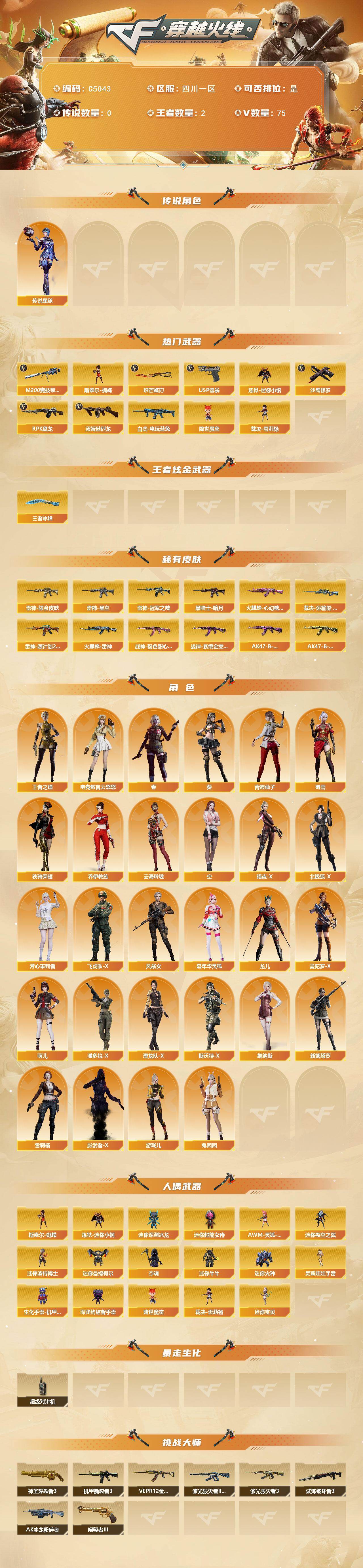 【C5043】四川一区-77V-2王者武器数-0炫金武器数