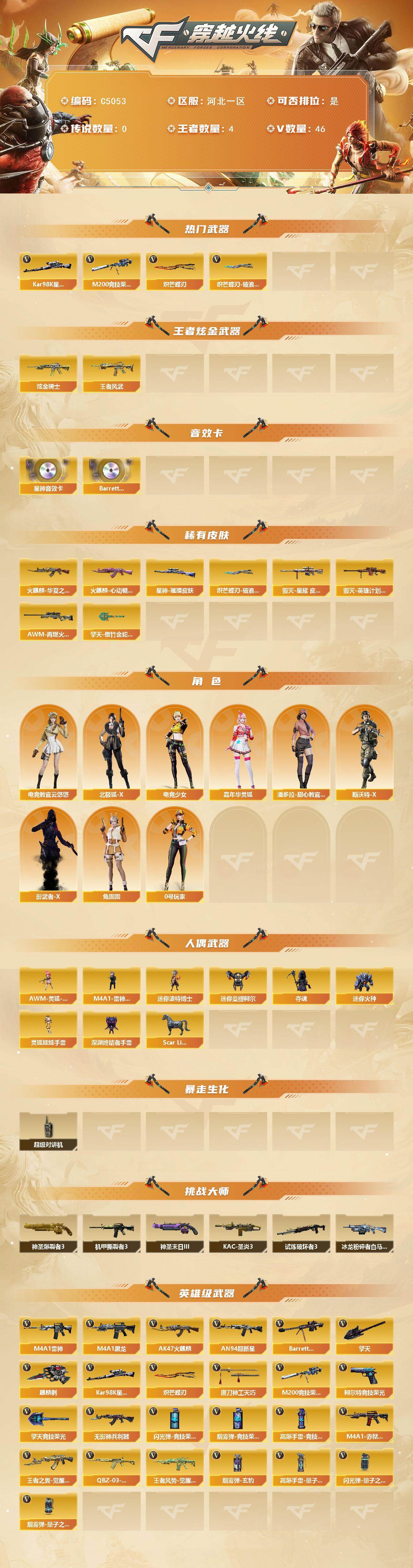 【C5053】河北一区-54V-4王者武器数-1炫金武器数