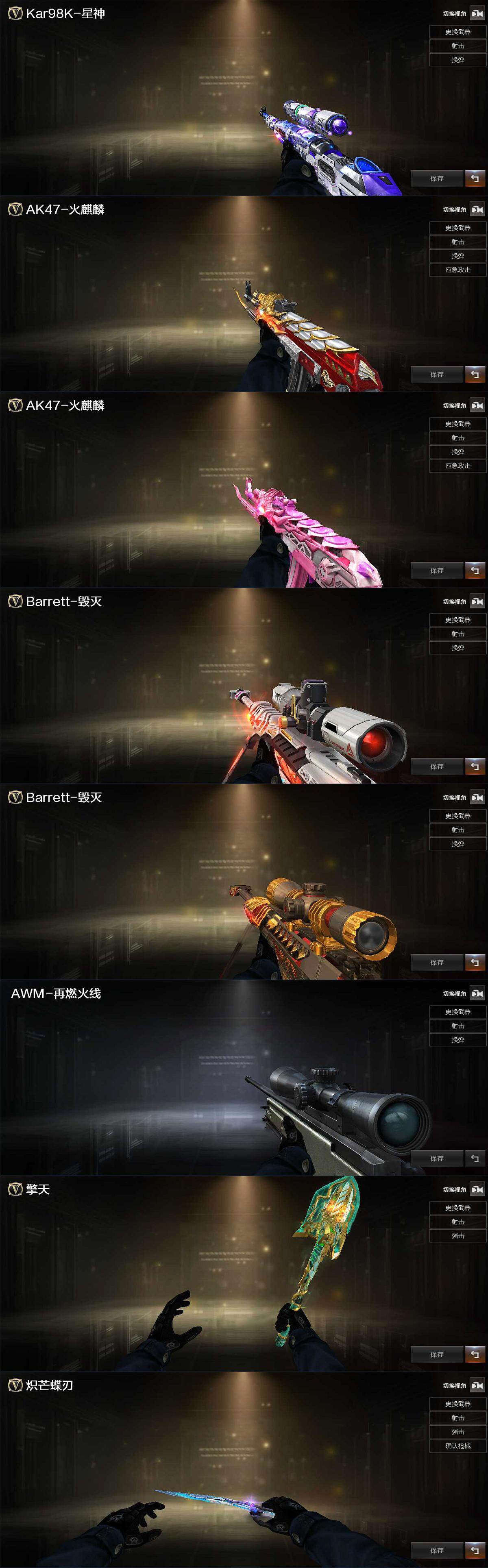 【皮肤】:星神-璀璨皮肤,火麒麟-华夏之心,火麒麟-心动糖果,毁灭-星耀 皮肤,毁灭-英雄计划 皮肤,AWM-再燃火线,擎天-傲竹金蛇 皮肤,炽芒蝶刃-破浪逐光 皮肤