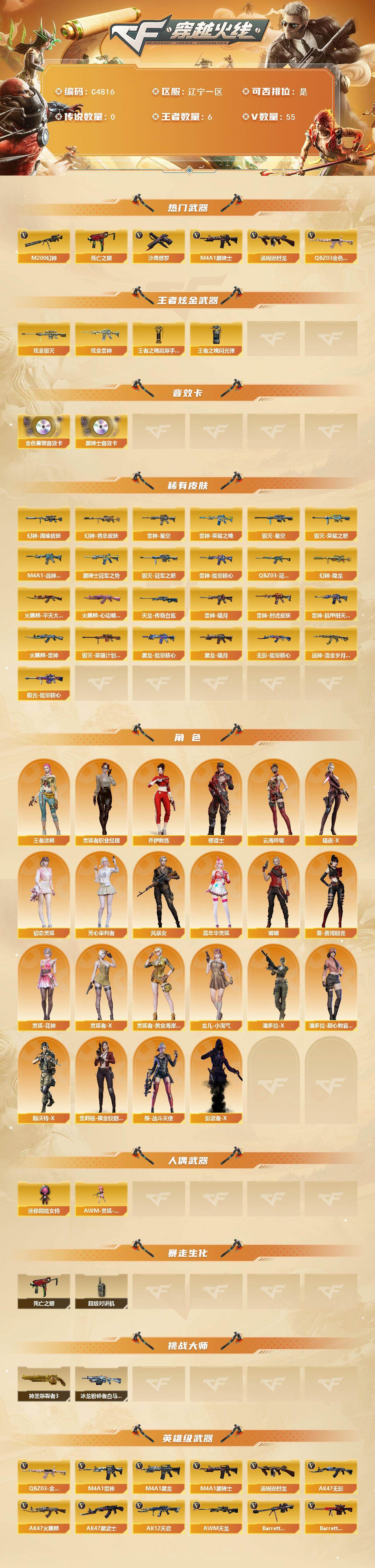 【C4816】辽宁一区-58V-6王者武器数-2炫金武器数