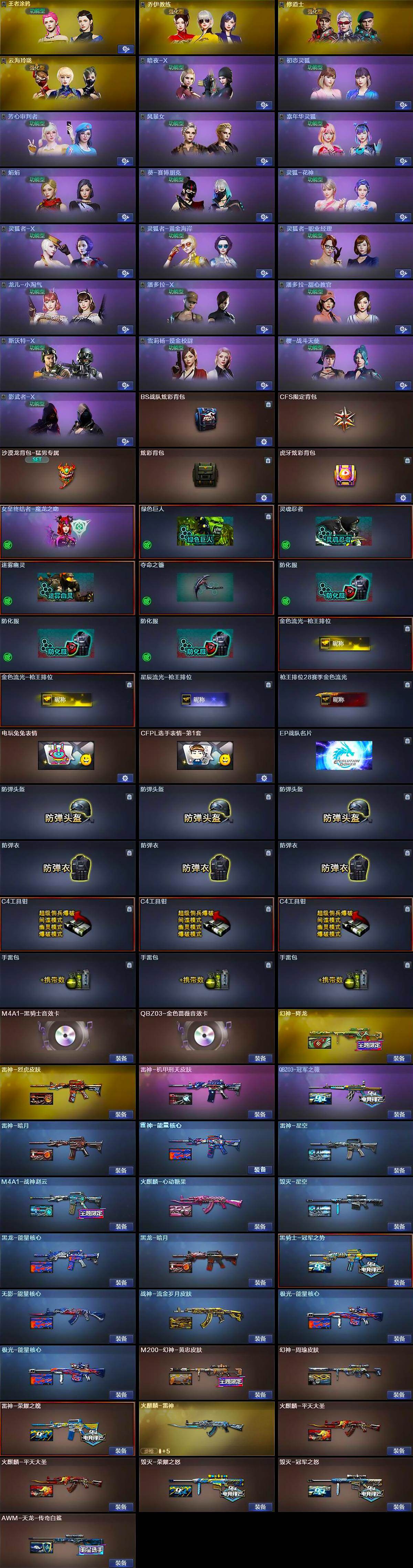 【皮肤】:M200-幻神-黄忠皮肤,幻神-周瑜皮肤,幻神-降龙,QBZ03-冠军之薇,雷神-暗月,雷神-能量核心,雷神-荣耀之魄,雷神-星空,M4A1-战神赵云,雷神-烈虎皮肤,雷神-机