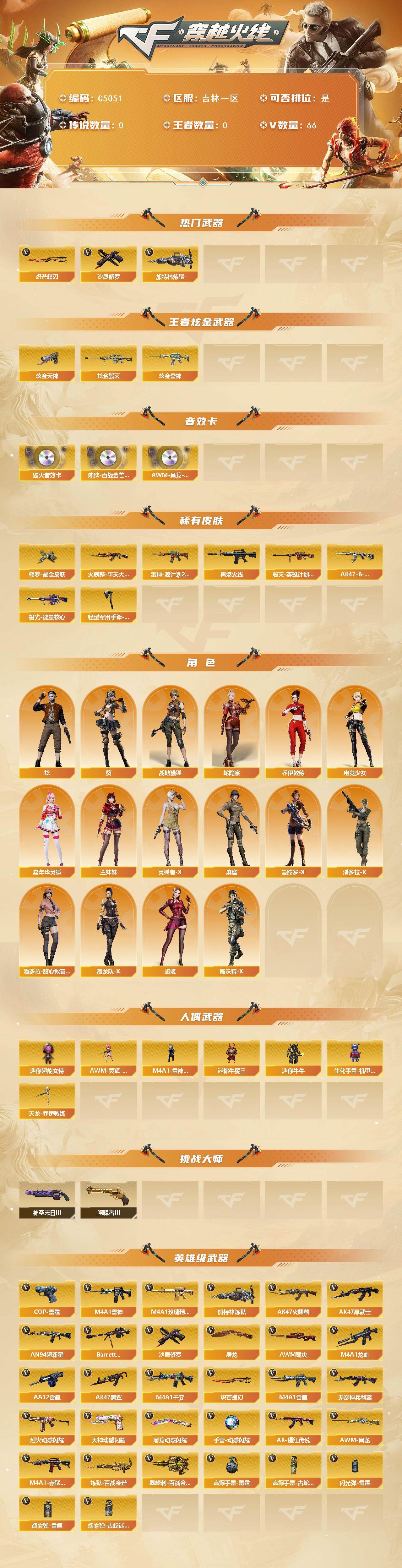 【C5051】吉林一区-65V-0王者武器数-3炫金武器数