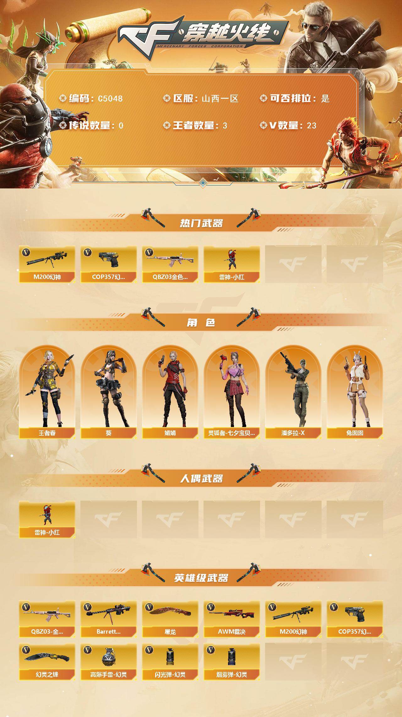 【C5048】山西一区-24V-3王者武器数-0炫金武器数