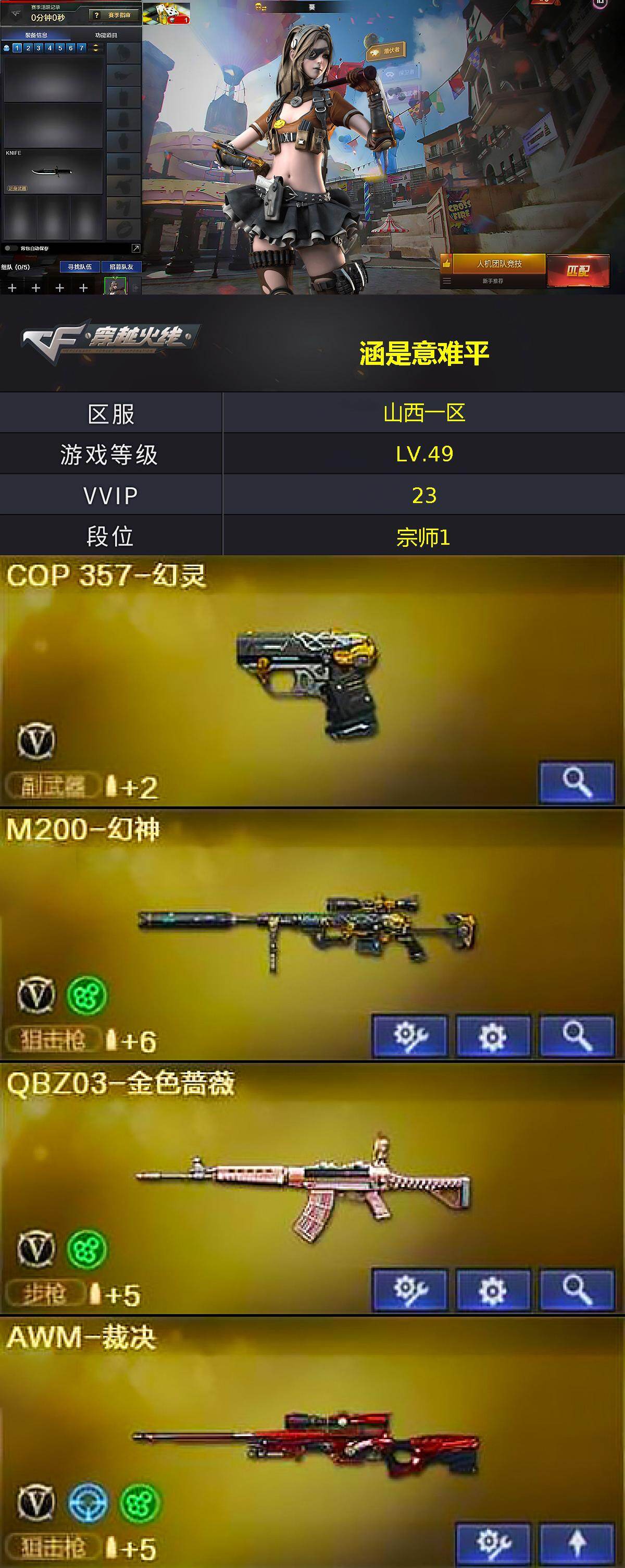 【英雄级武器】:QBZ03-金色蔷薇,Barrett-毁灭,AWM-裁决,M200-幻神,COP 357-幻灵,屠龙,幻灵之锋,高爆手雷-幻灵*4,闪光弹-幻灵*5,烟雾弹-幻灵*5