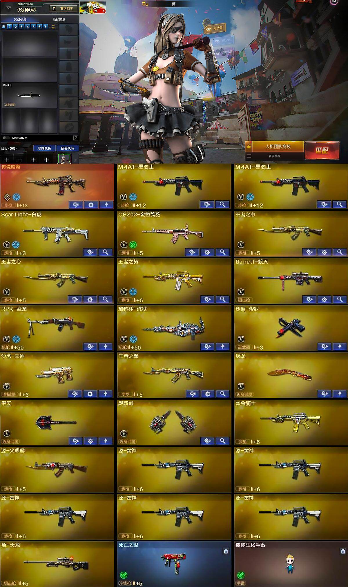 【HXD62】13V/50级/尉官/1传说/4王者/1炫金/1英雄/传说暗裔/QBZ03-金色蔷薇/scar_白虎/死亡之眼/M4A1_黑骑士/RPK_盘龙/加特林_炼狱/沙鹰_修罗/王者之翼/炫金骑士/火麒麟-平天大圣/葵/王者-魅影/飞虎队-X/娟娟/迷你生化手雷/Scar Light-白虎/王者之心-觉醒版/王者之势-觉醒版/Barrett-毁灭/沙鹰_天神/屠龙/擎天/麒麟刺/夺命之镰/防化服/防弹头盔/防弹衣/C4工具钳/手雷包
