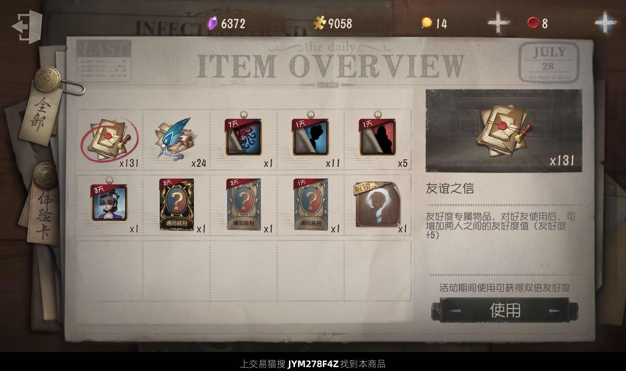 随身物品数量: