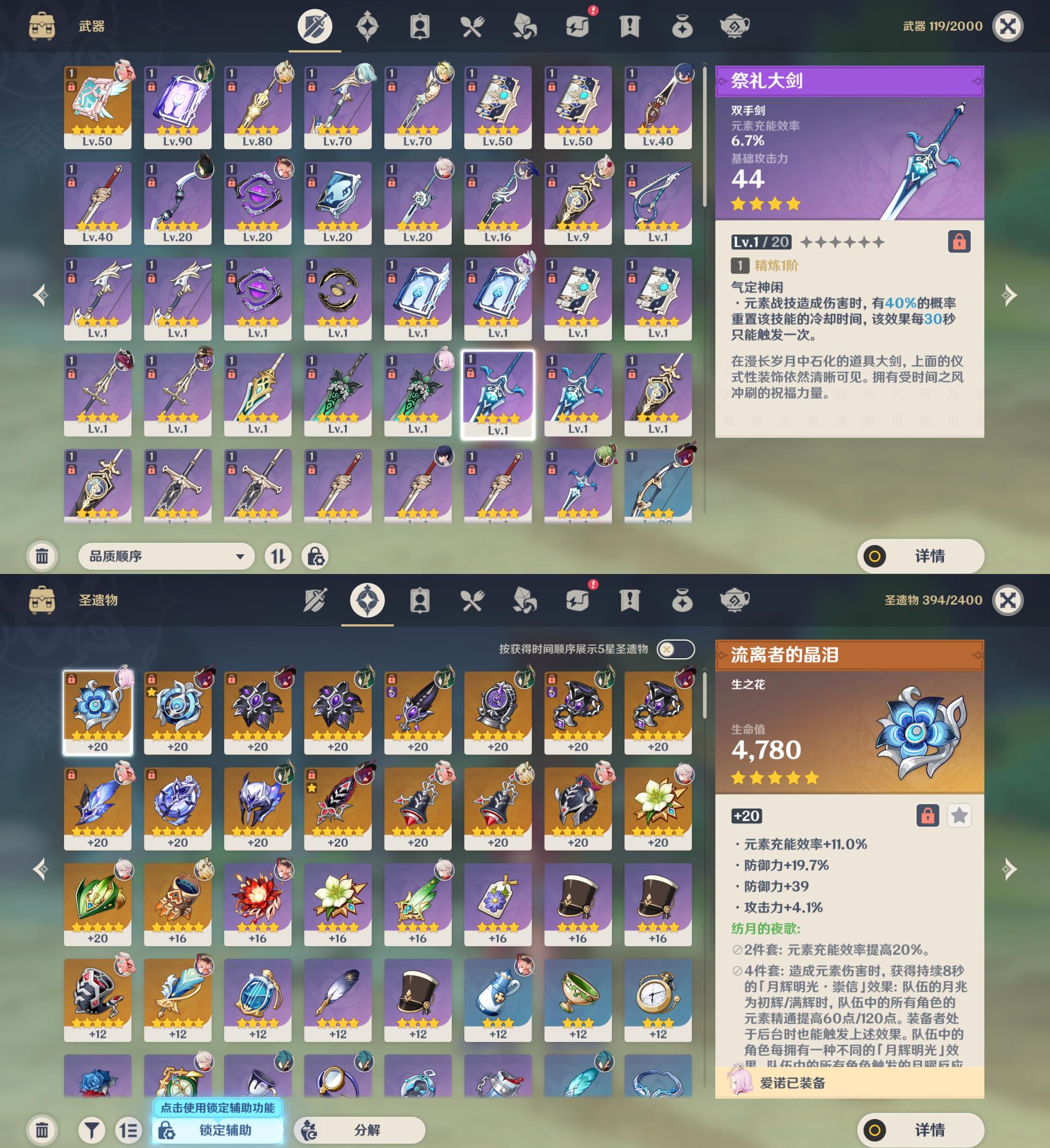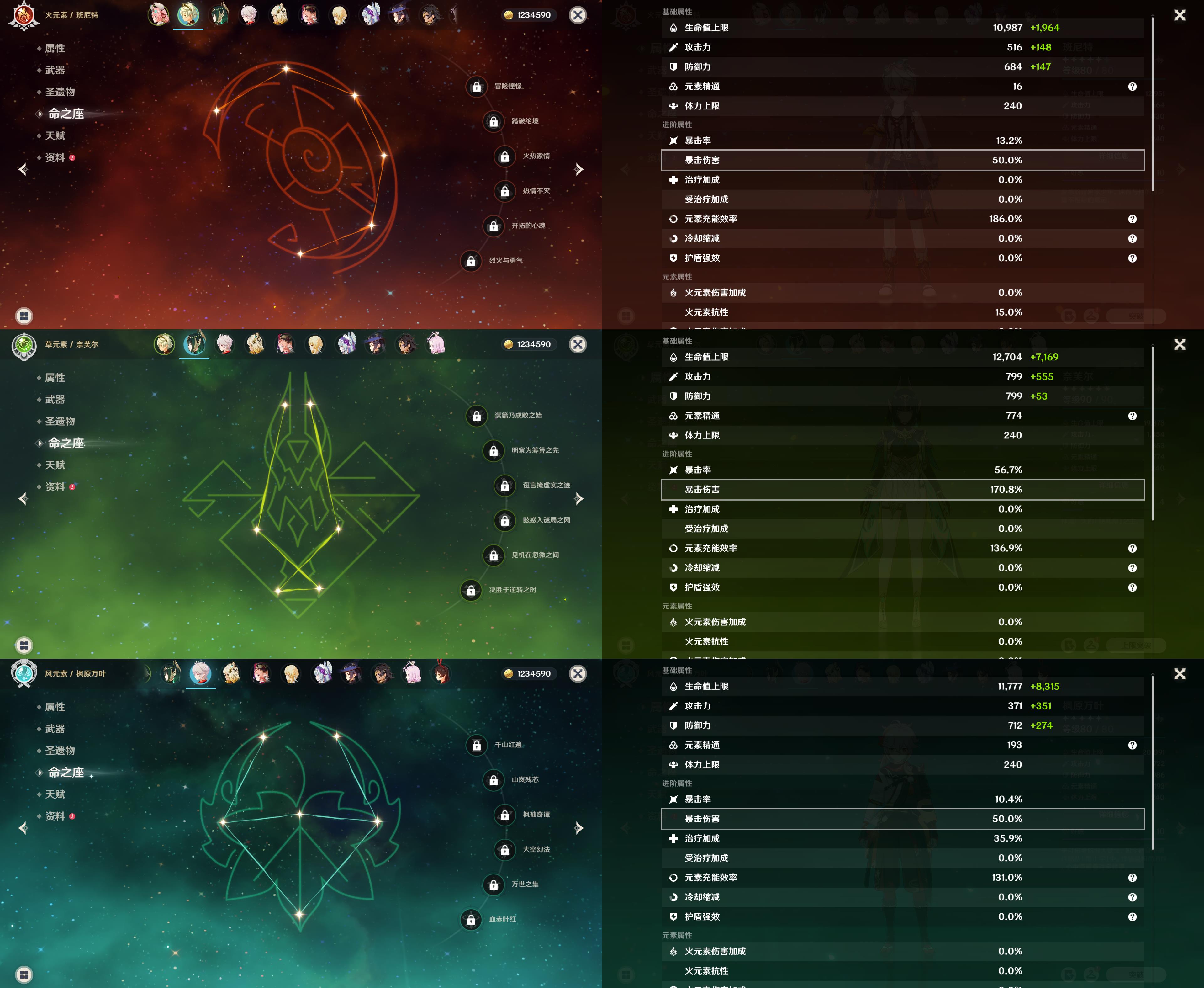 14黄/男主/10个五星角色/1个五星武器/恰斯卡/0命瓦雷莎/0命奈芙尔/枫原万叶/希诺宁/