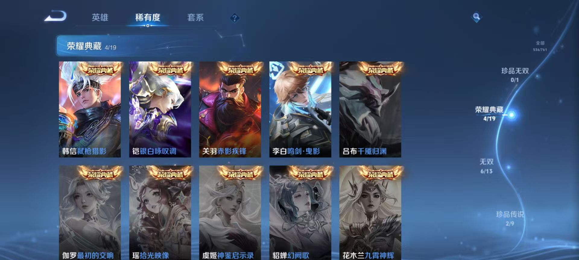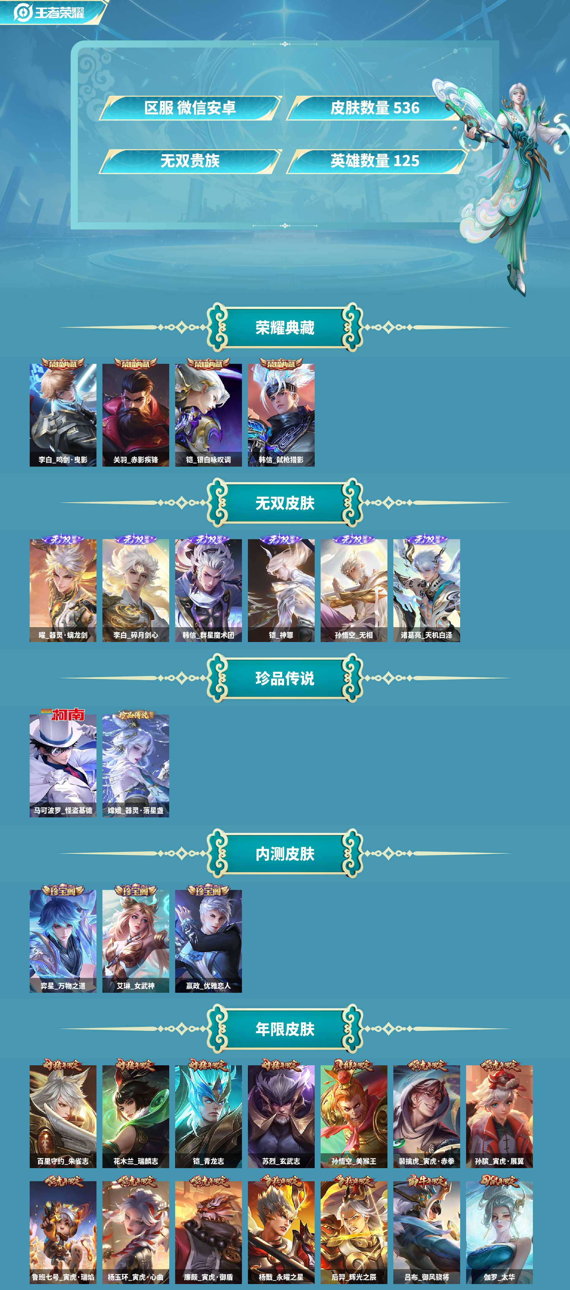 特价安卓v区微信一切正常空钱包 无双v10 刺客打野野王号 全皮韩信6无双全是打野 铠神罪,韩信群星魔术团,曜器灵螭龙剑,李白碎月剑心,诸葛亮天机白泽无相 荣耀典藏:关羽赤影疾锋,铠银白咏叹调,韩信弑枪猎影,李白鸣剑曳影 80多质量传说