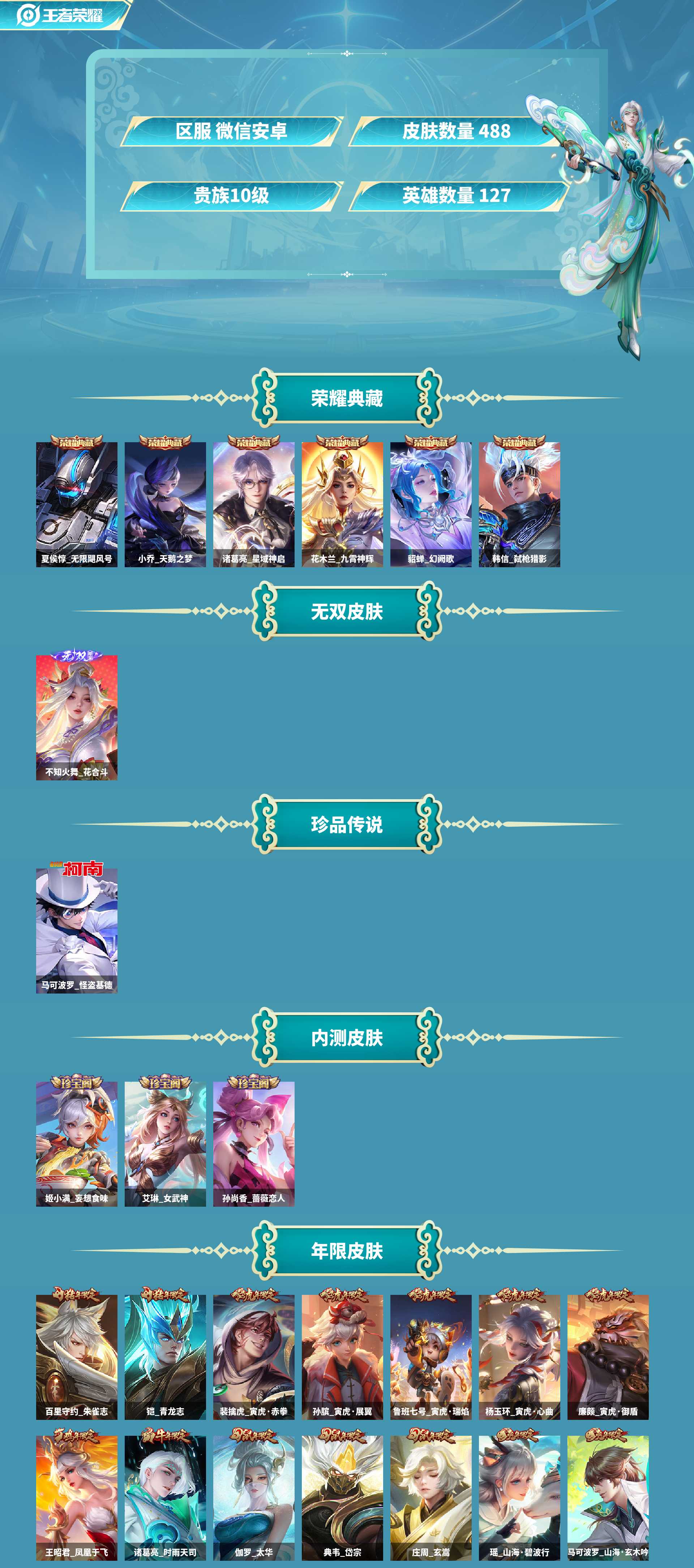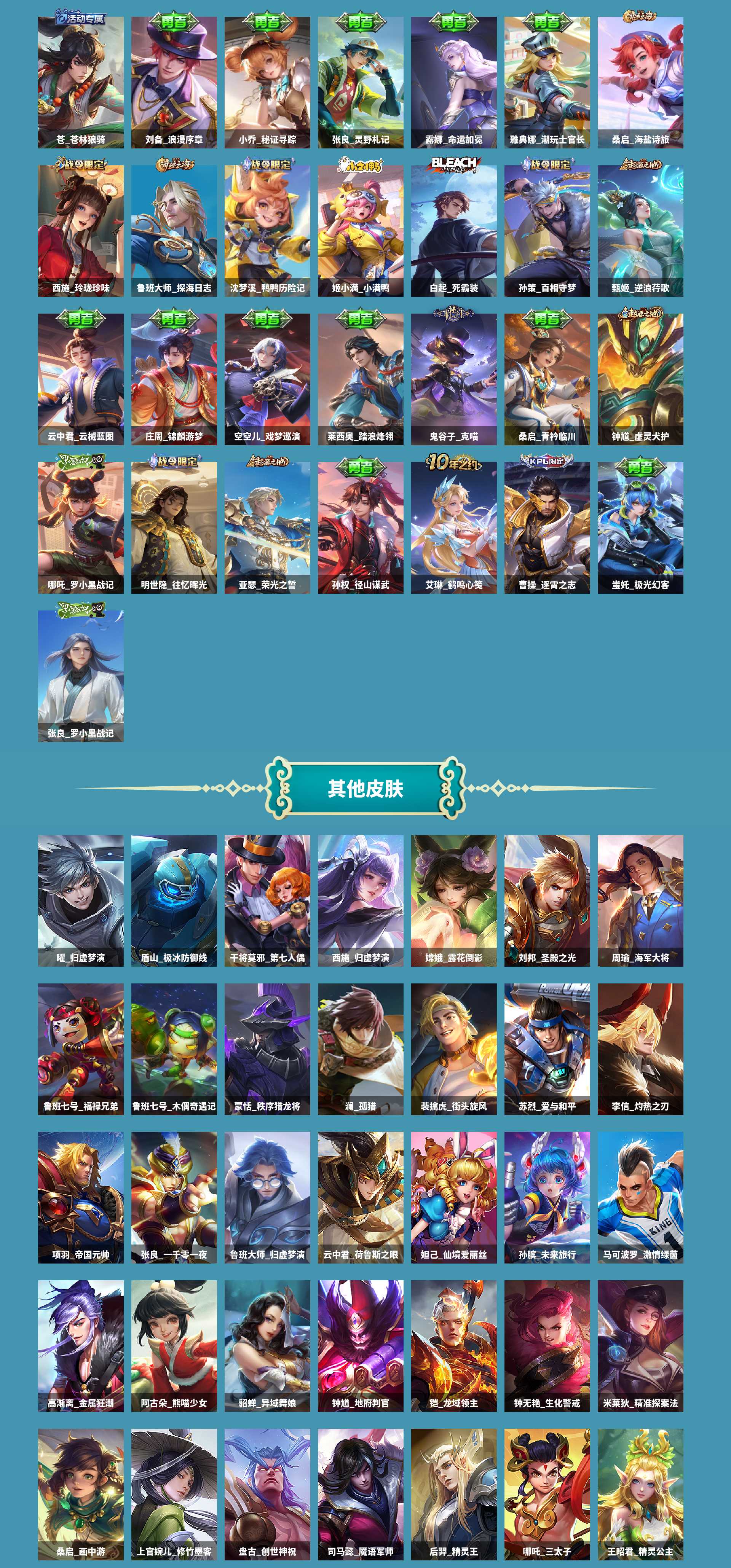 特价安卓v区488皮微信花木兰九霄神辉,夏侯惇无限飓风号,小乔天鹅之梦,貂蝉幻阙歌,韩信弑枪猎影,诸葛亮星域神启不知火舞花合斗传说皮肤:宫本武藏地狱之眼,后裔神树通天,艾琳觅芳踪,妲己愿照众生和,澜愿照九州拓,司空震愿照山河定,虞姬愿照岁时盈,桑启鸣野蒿,马可波罗妄想实况,孙悟空零号赤焰,伽罗太华,马超无双飞将,铠曙光守护者,露娜启示之音,吕布遇见神鼓,伽罗炽翼辉光,吕布曦玄引,干将莫邪久胜战神,