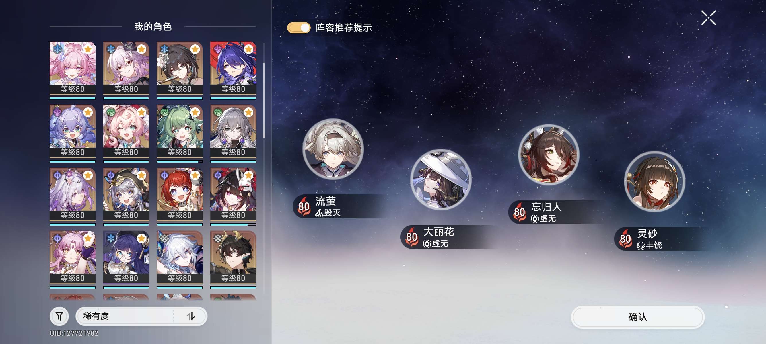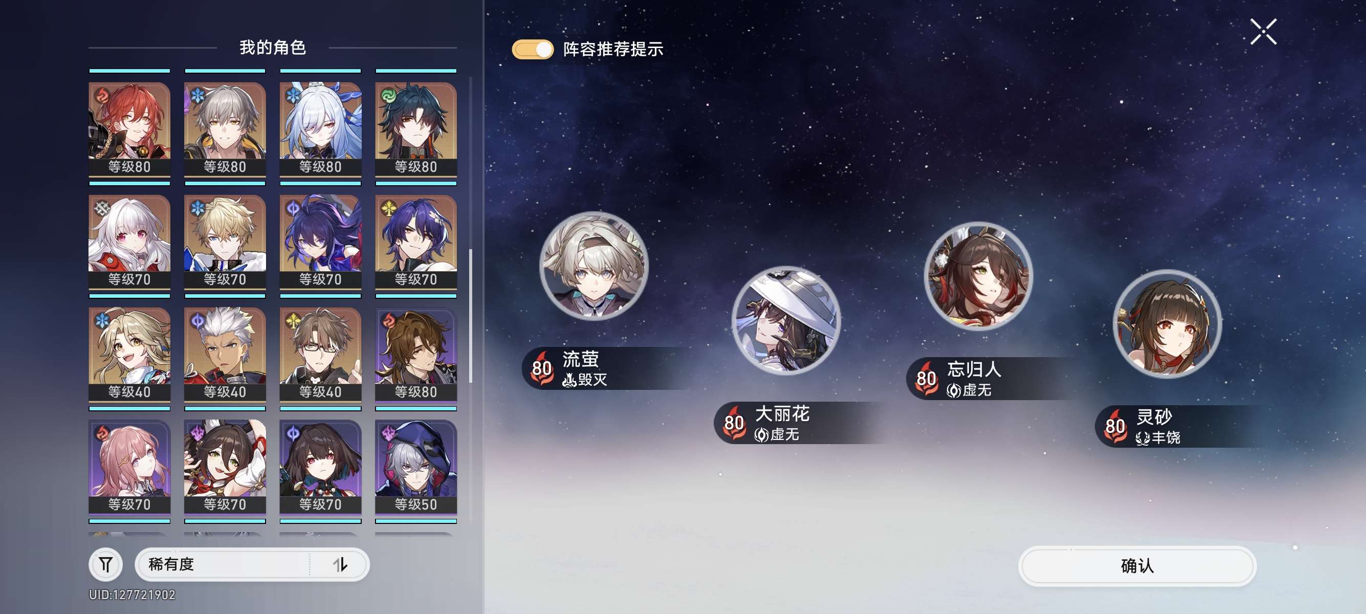 61黄泉流萤,配队齐全,可小刀,详细可来了解