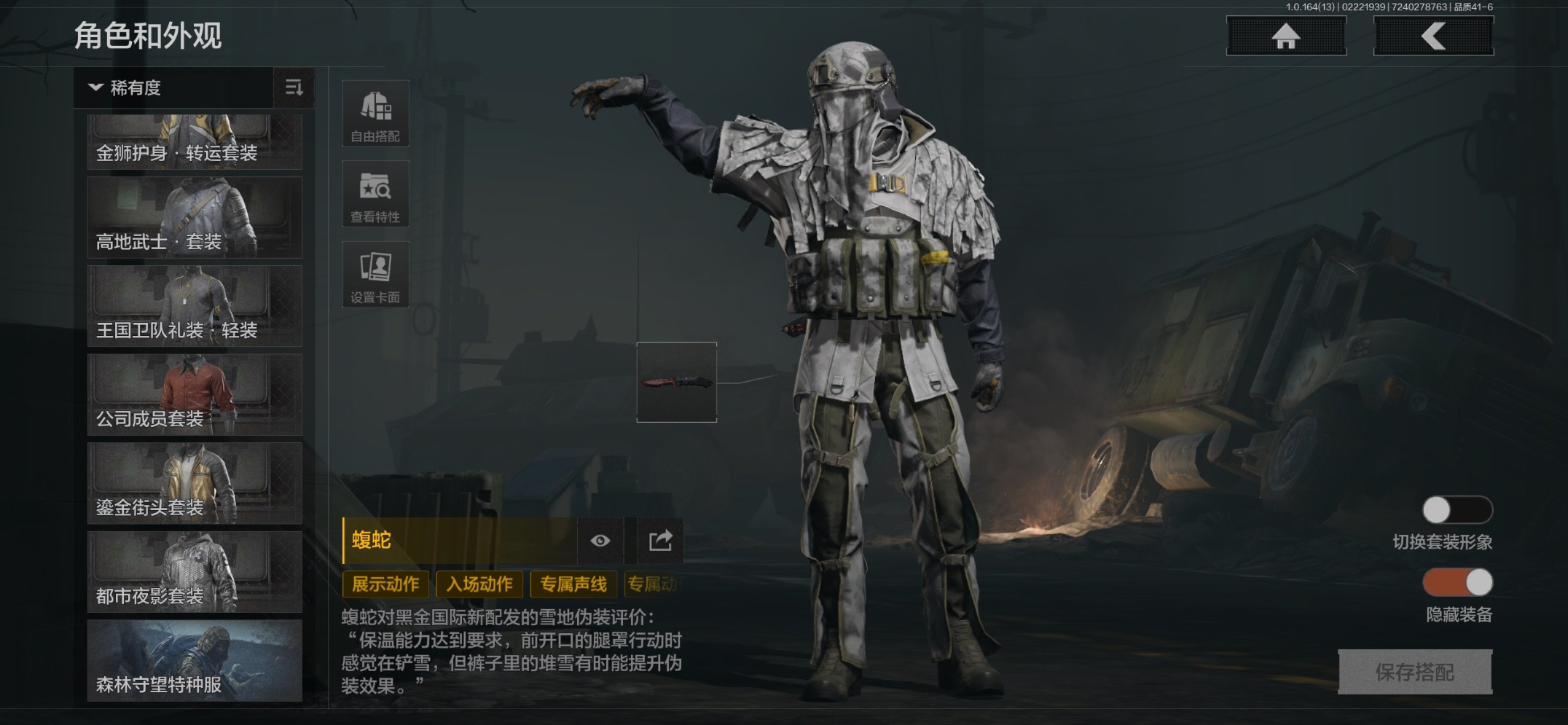 苹果qq/店主推荐-极品瑞兔刀皮资产号/猛攻哥首选账号/资产8.1M/纯币2.2M/刀皮(s-07折刀 热能武器.补牢 狼霜生存刀 瑞兔折刀)/金衣(蝮蛇 使徒.欧瑞恩