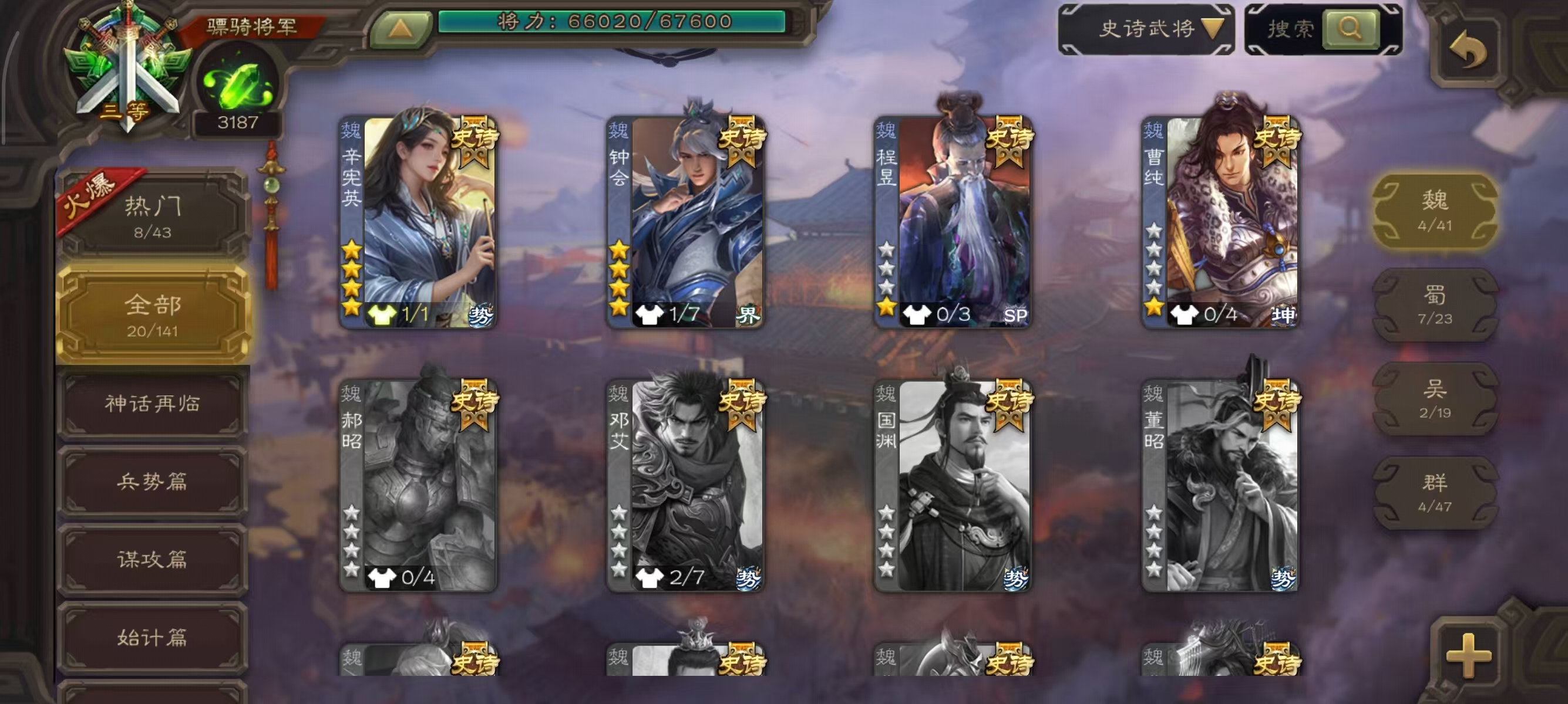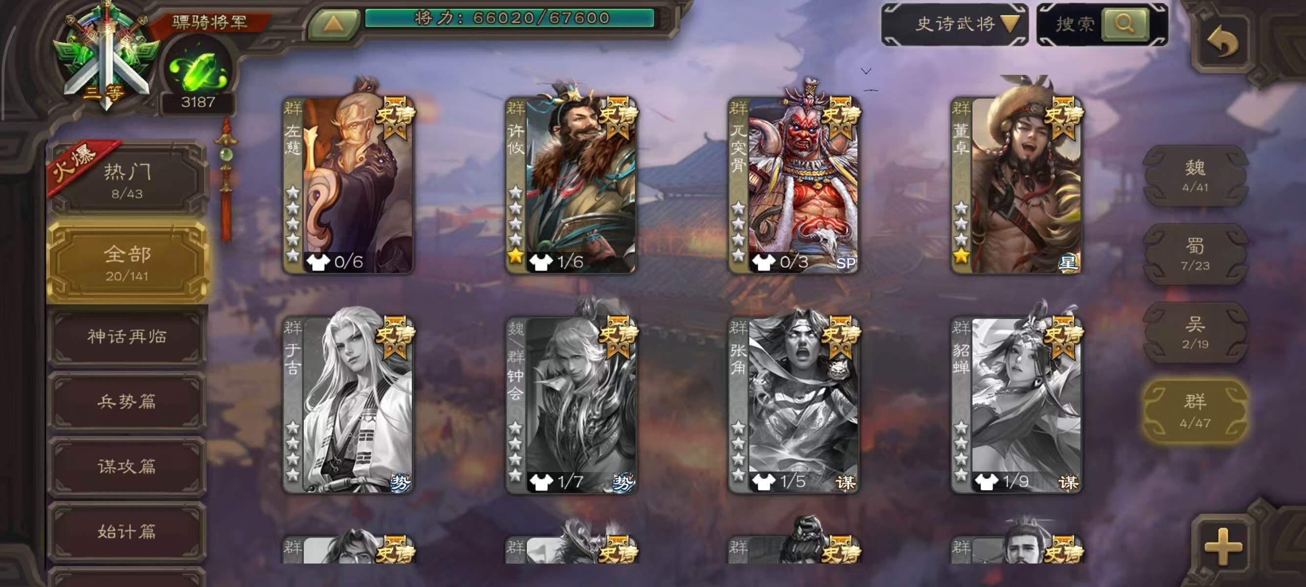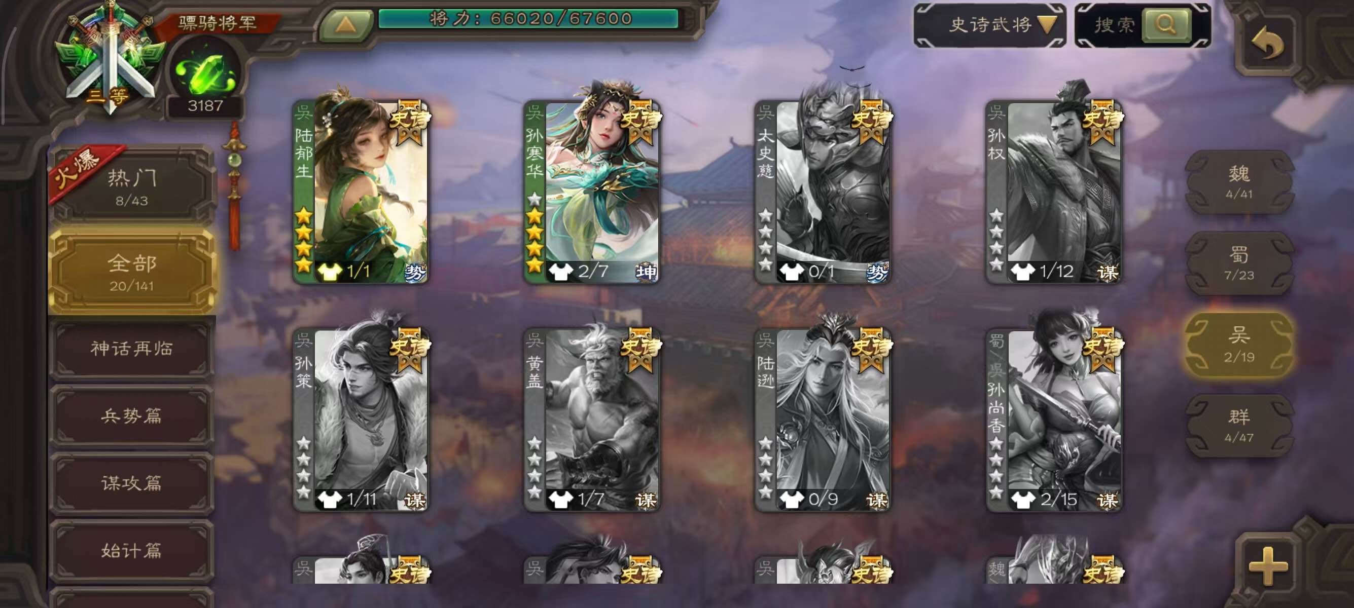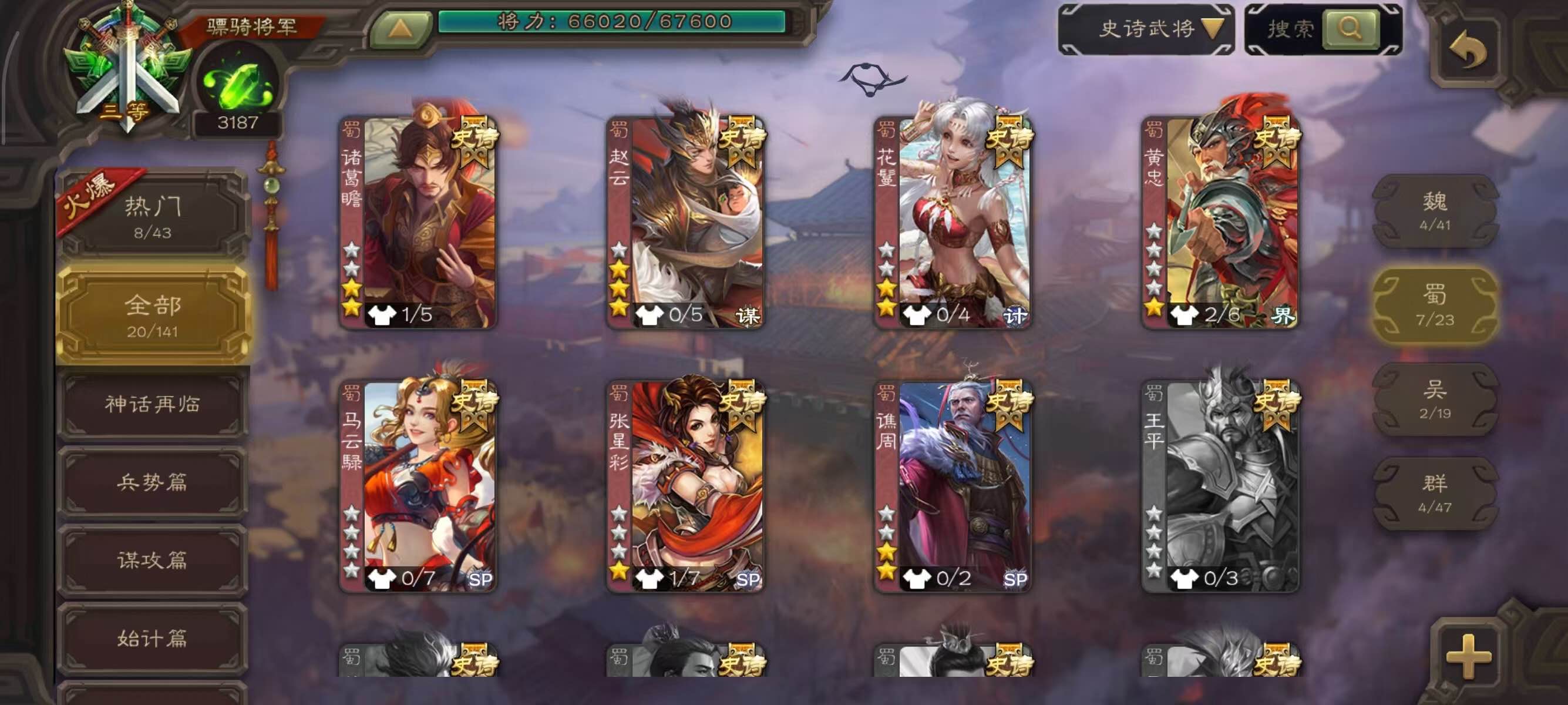 史诗武将数量: