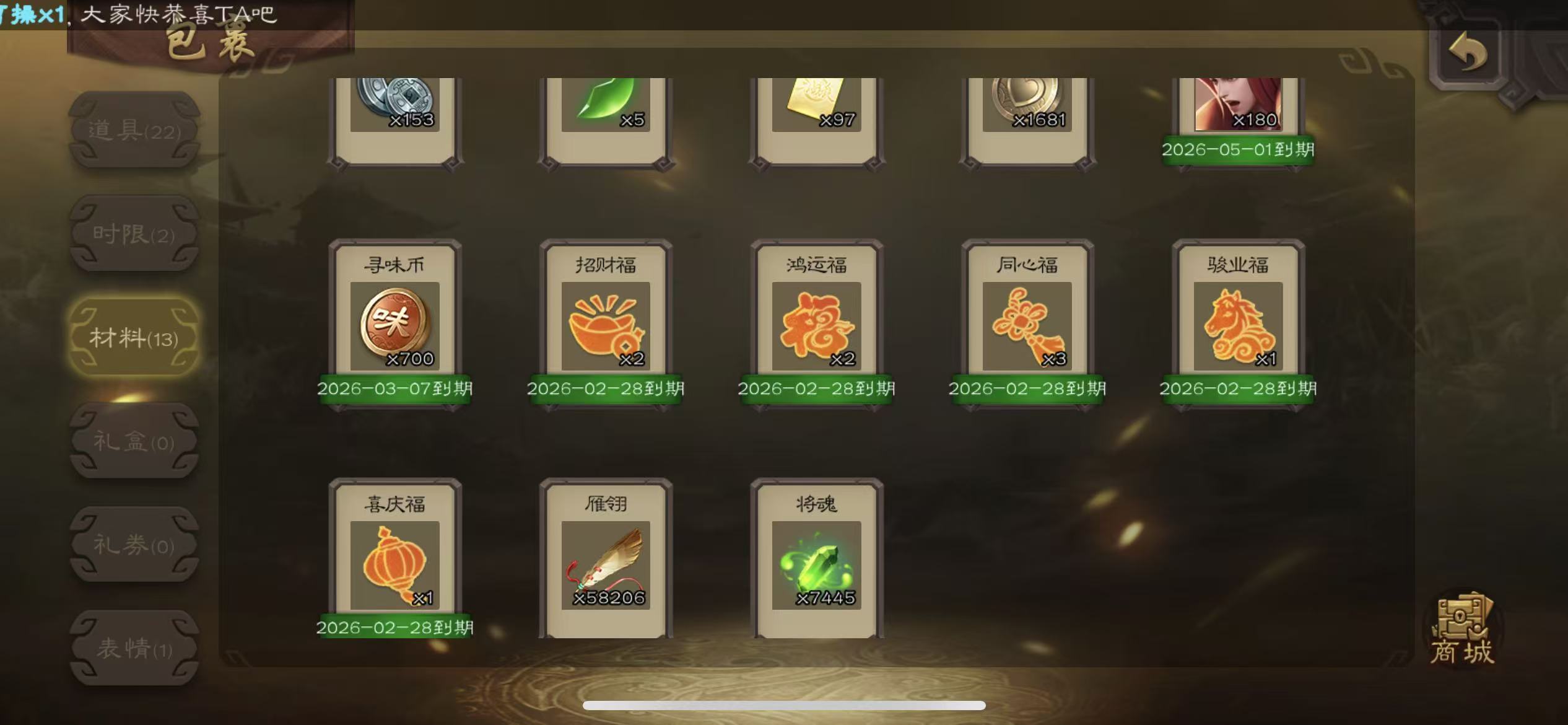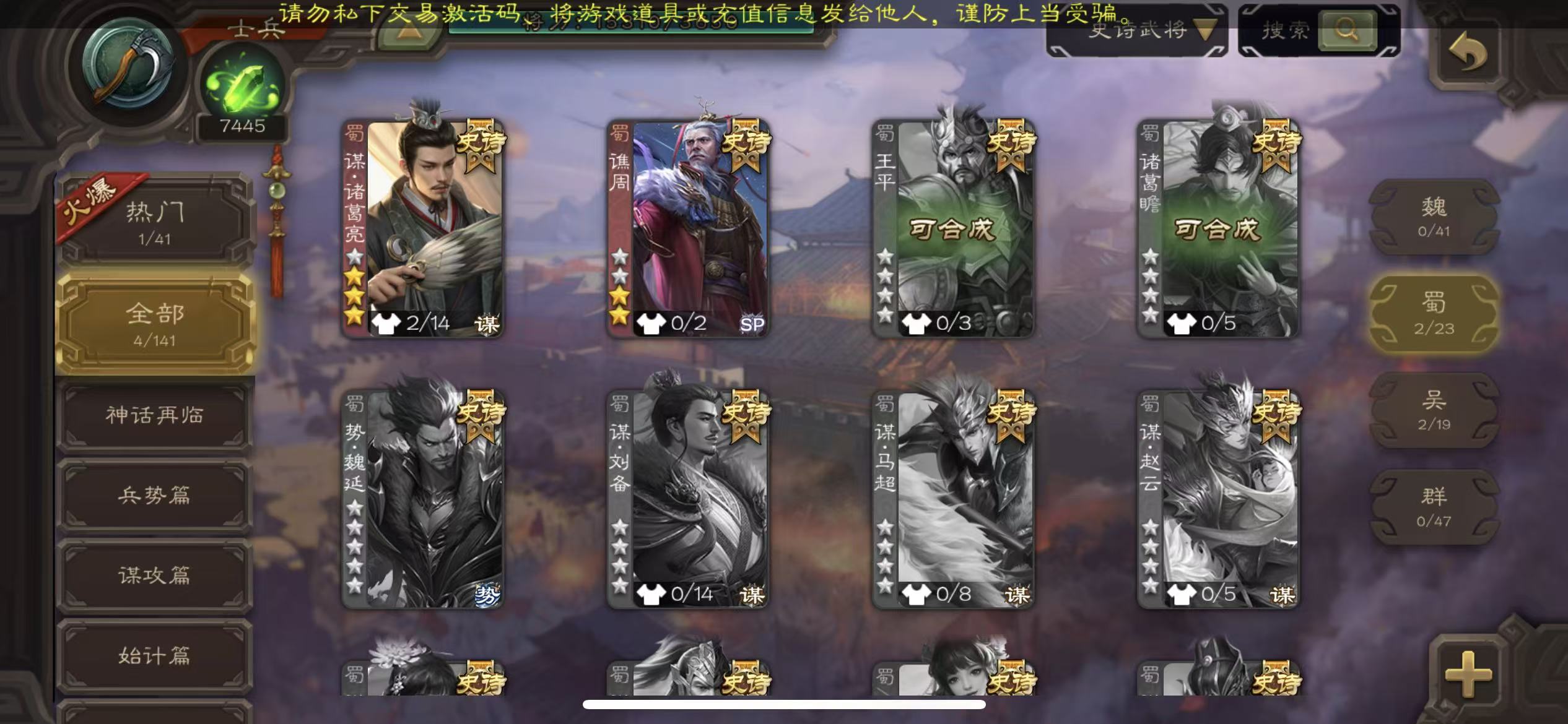 士兵谋诸葛亮大宝7400将魂5.8万羽毛119招募令三卡