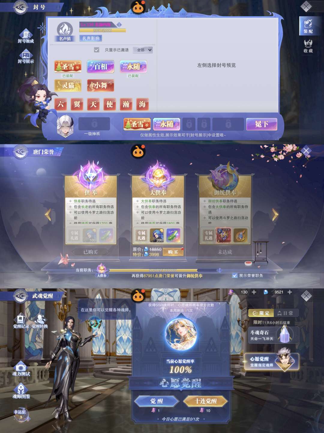 4861亿战力。大供奉。光暗大雪28sp。彩1大荣。130抽。9500钻石。