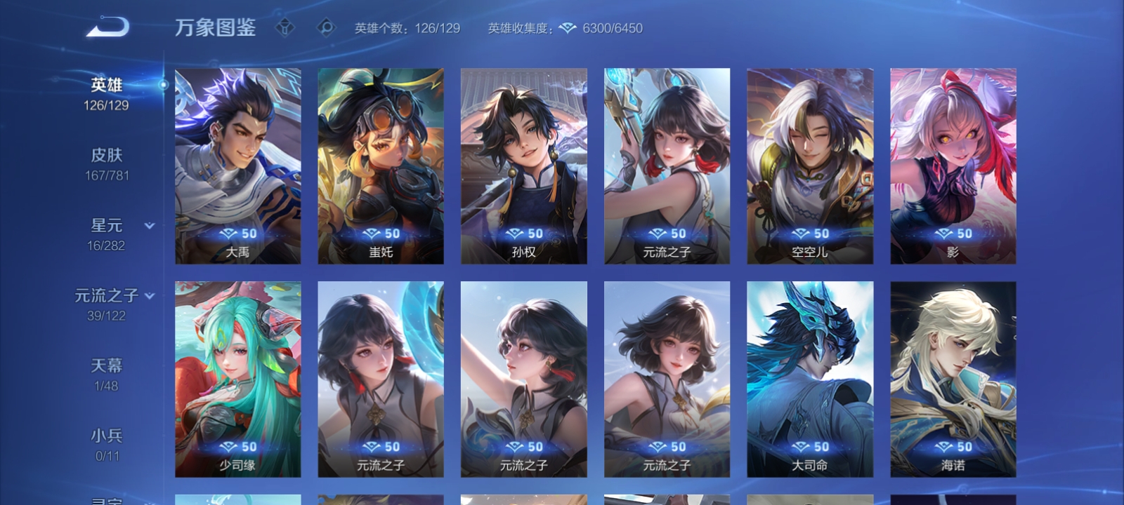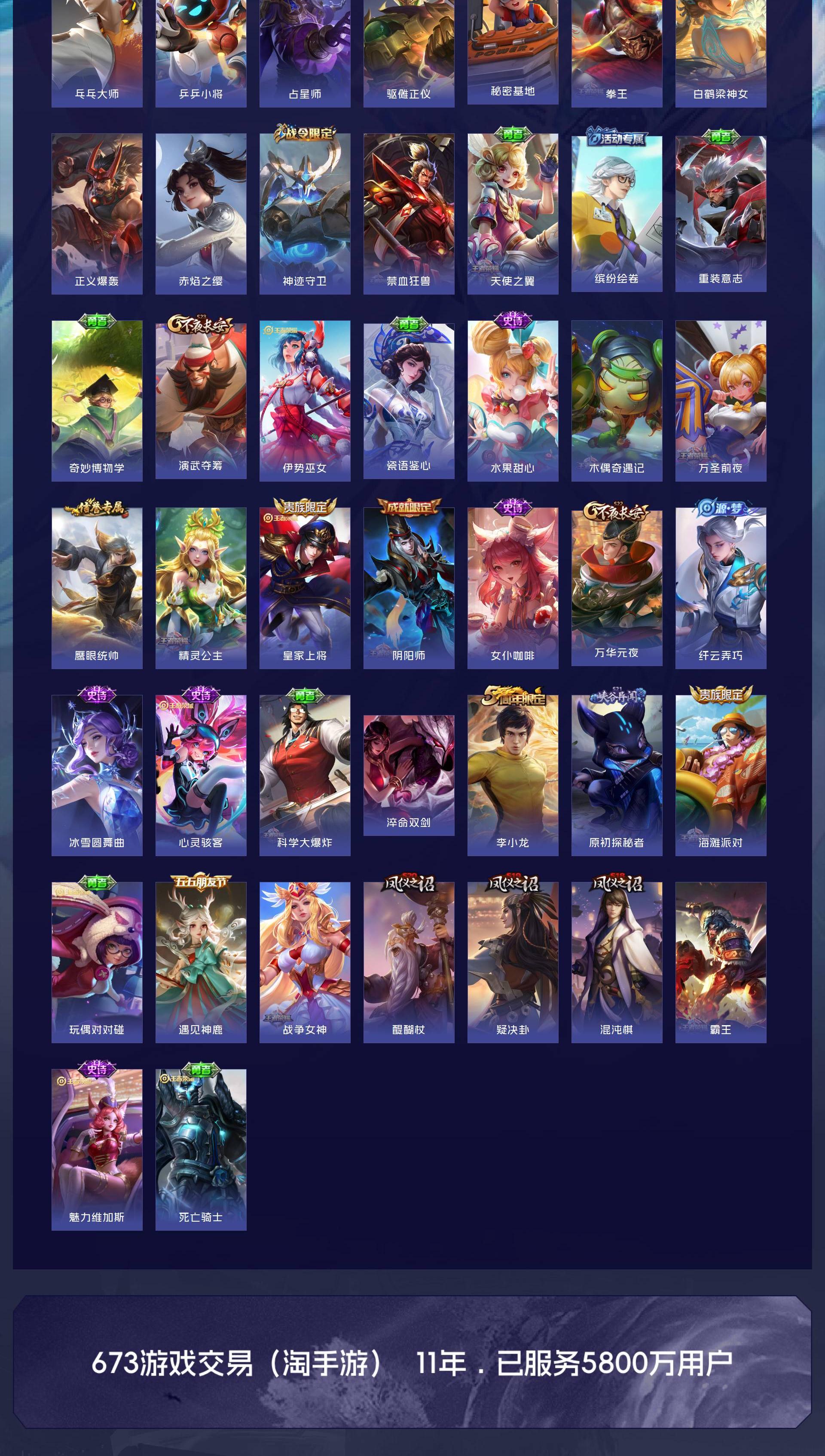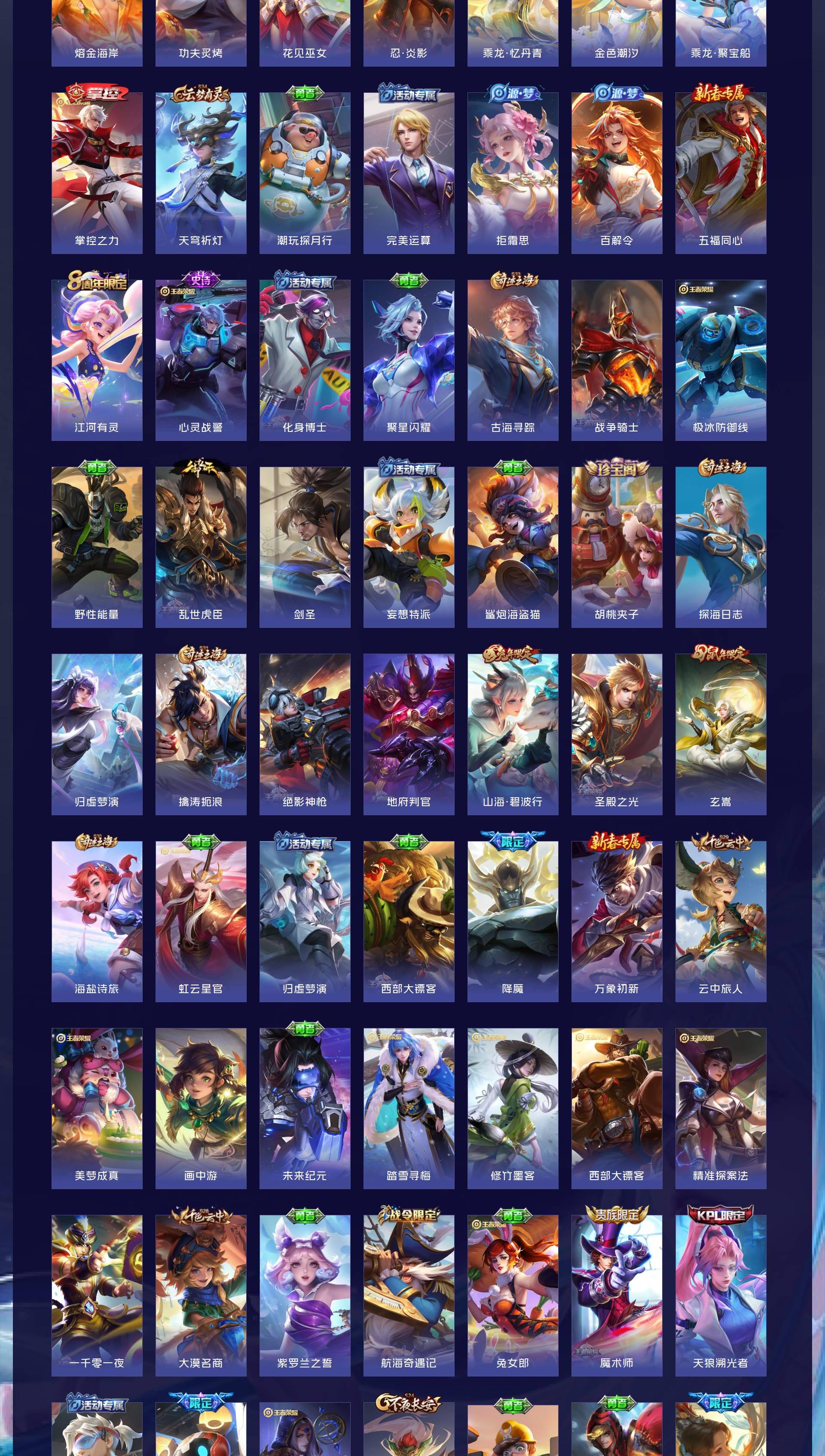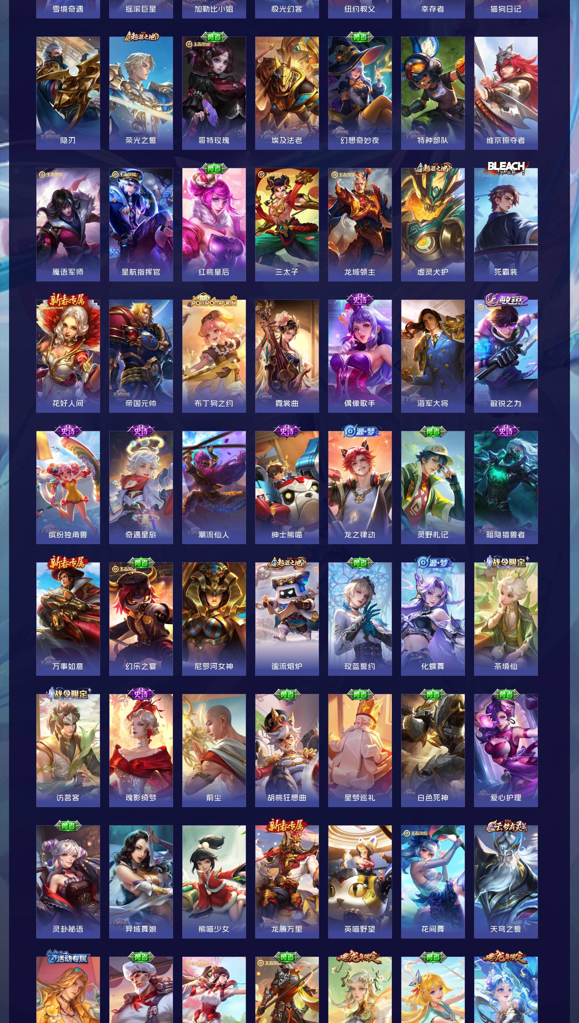 V7 皮肤167 英雄126 荣耀黄金 荣耀典藏1 珍品传说3 星传说1 传说5 其他皮肤163