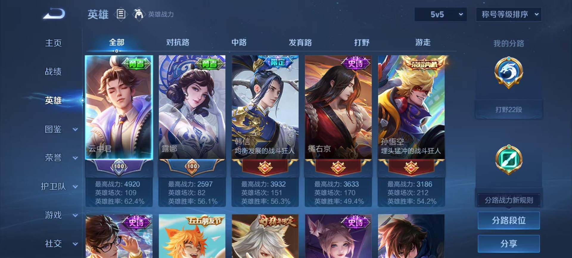 V6 1典藏 4传说 126英雄 165皮肤 可修改实名 男号