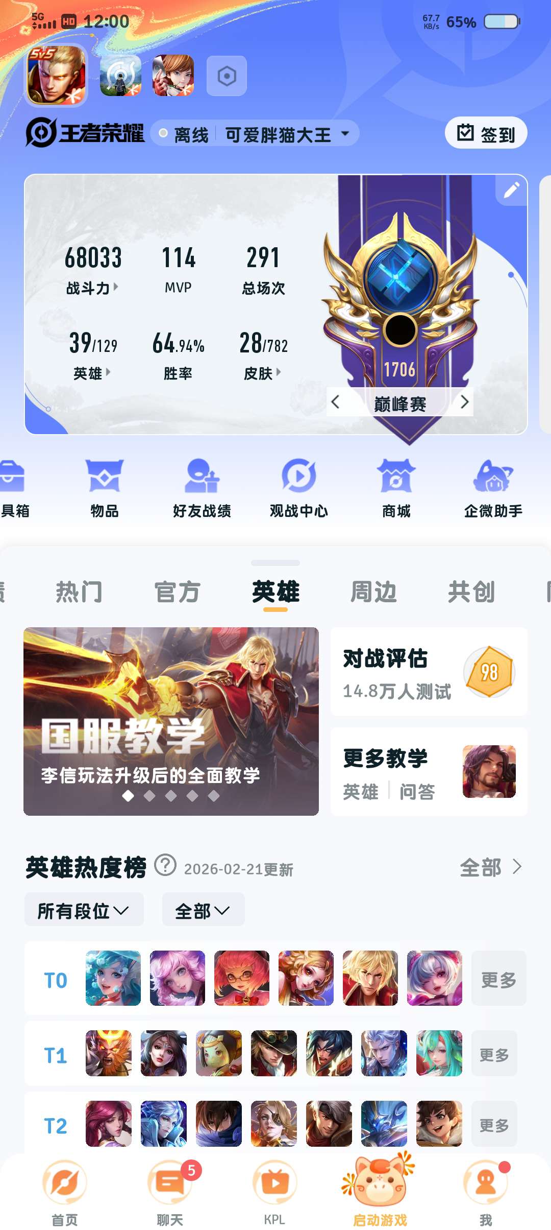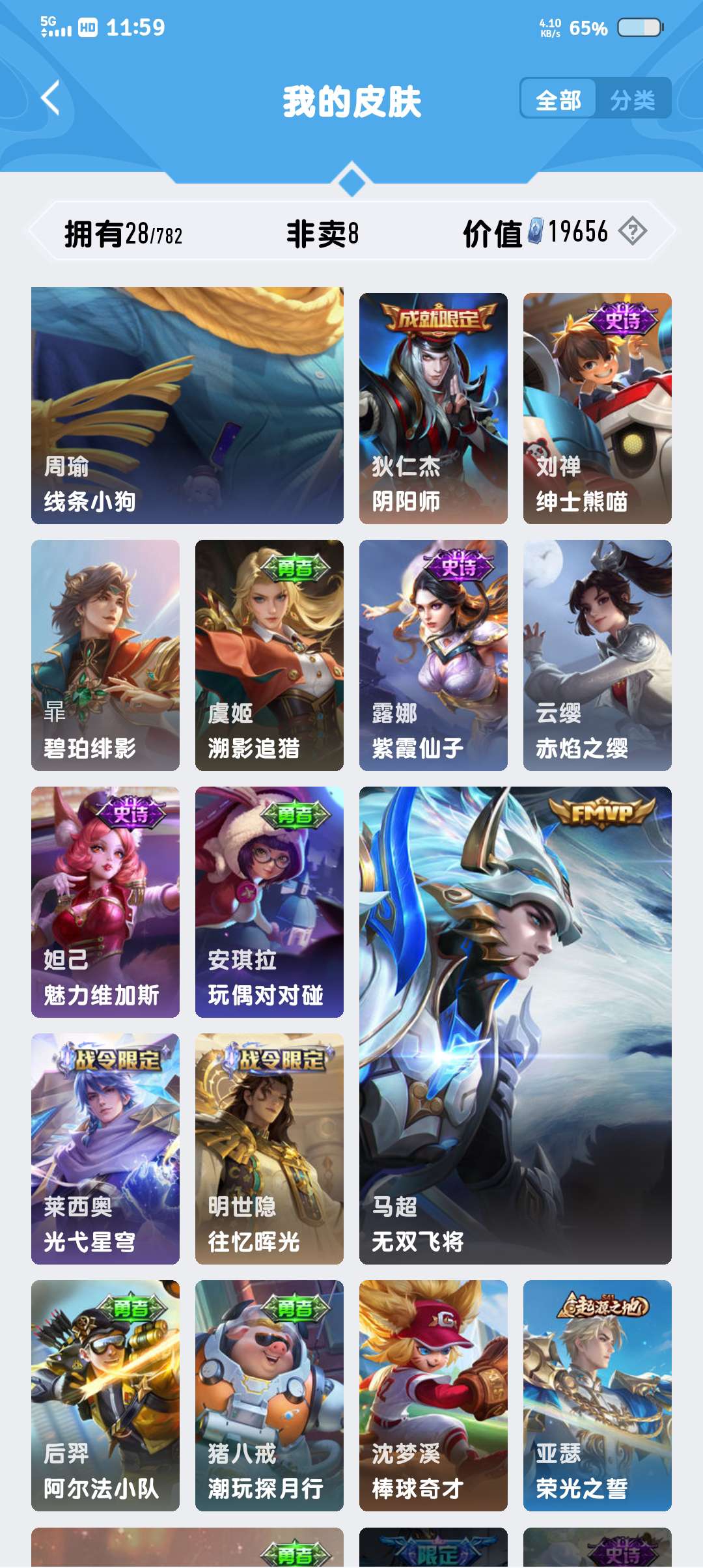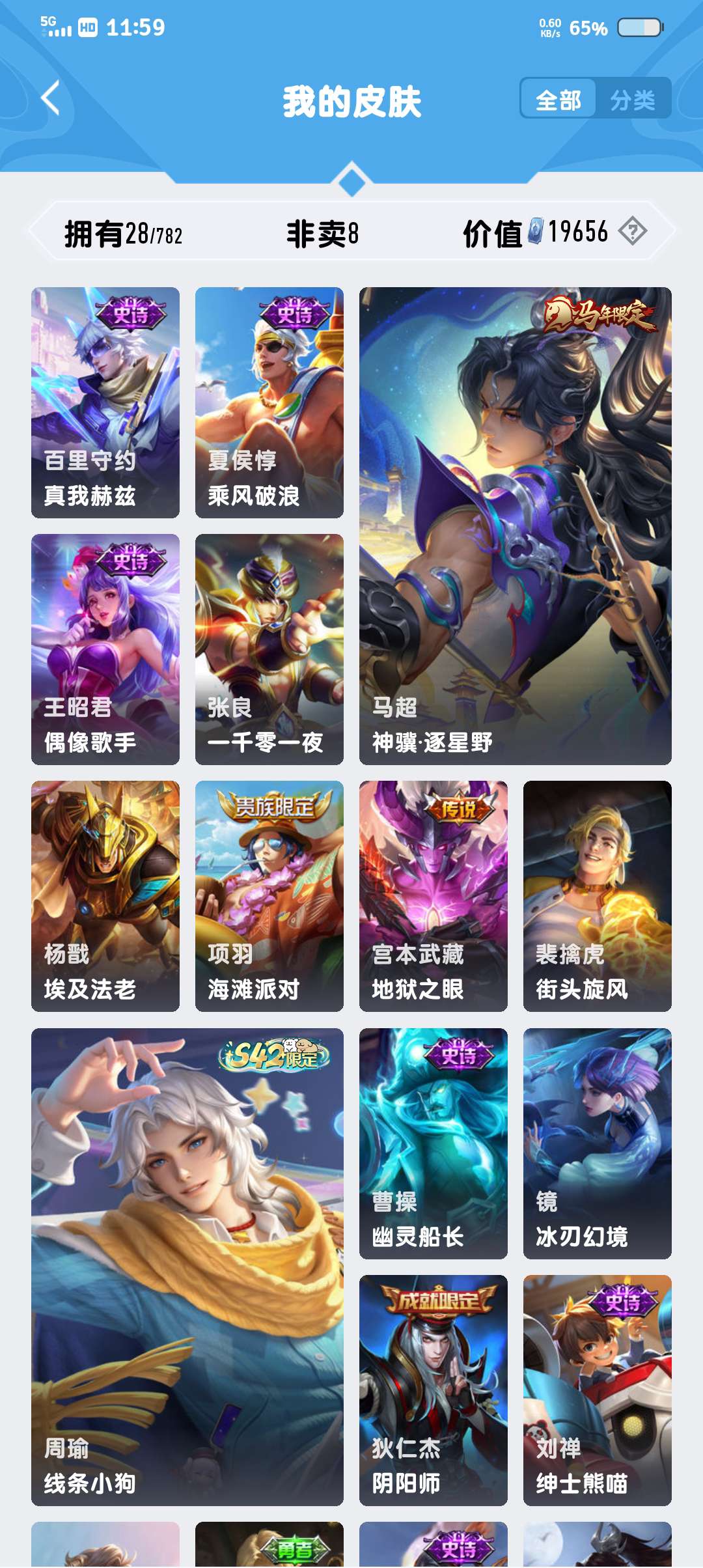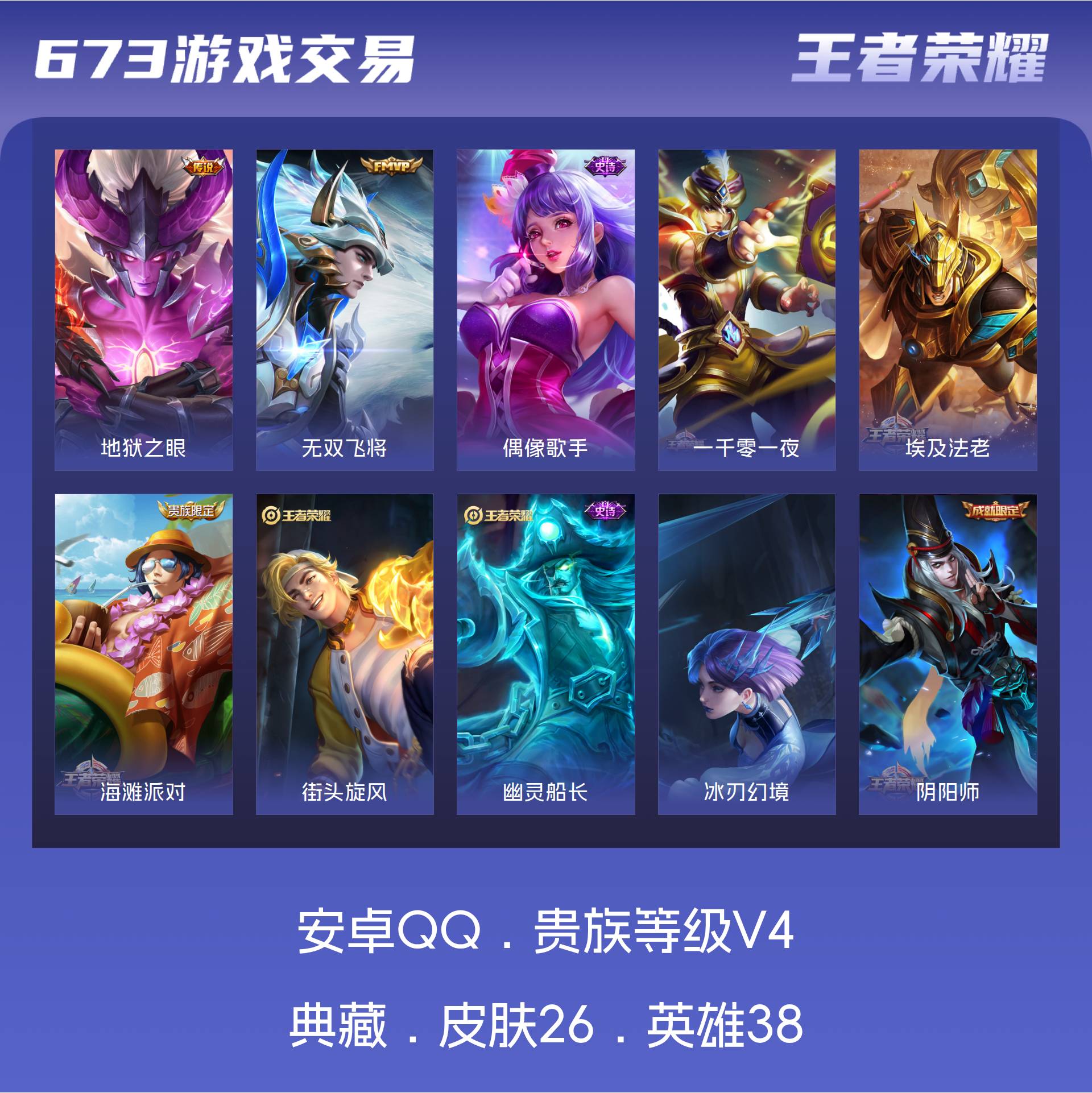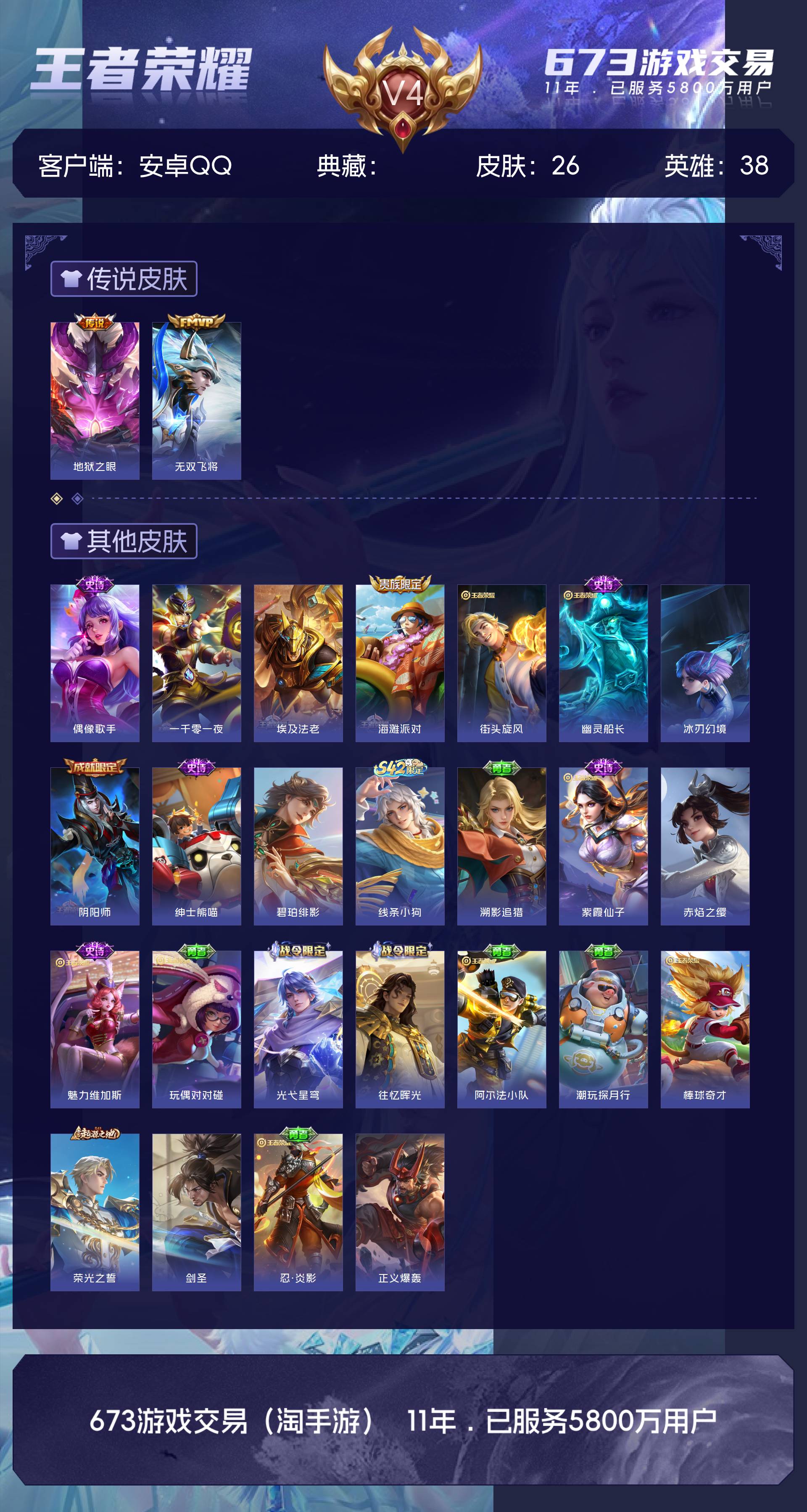 V4 皮肤26 英雄38 最强王者 传说2 其他皮肤25