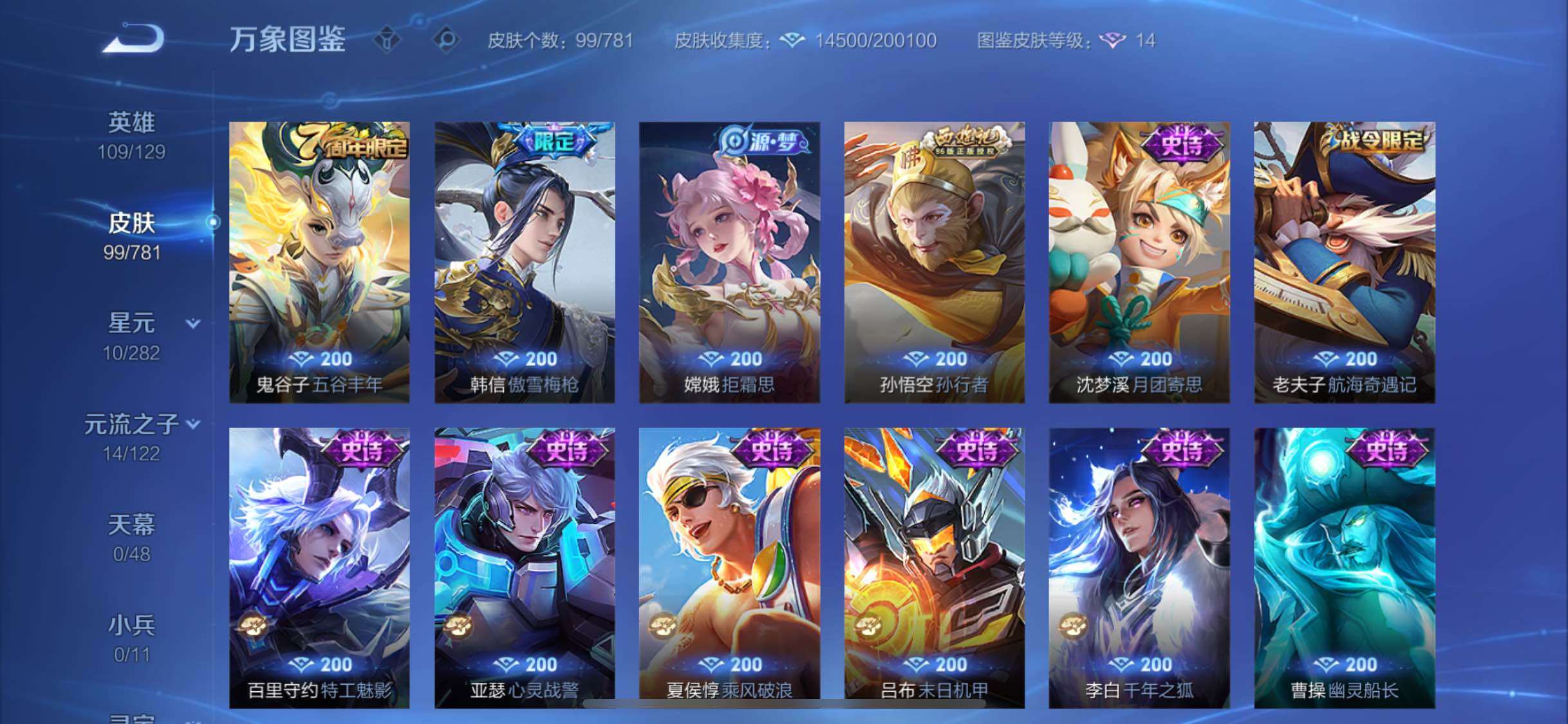 【传说皮肤】:马超神骥逐星野,后羿神树通天,桑启鸣野蒿,宫本武藏地狱之眼,孙悟空地狱火