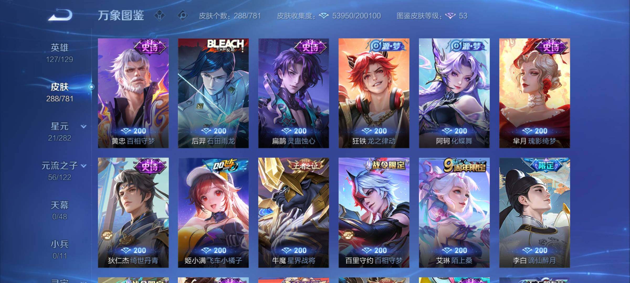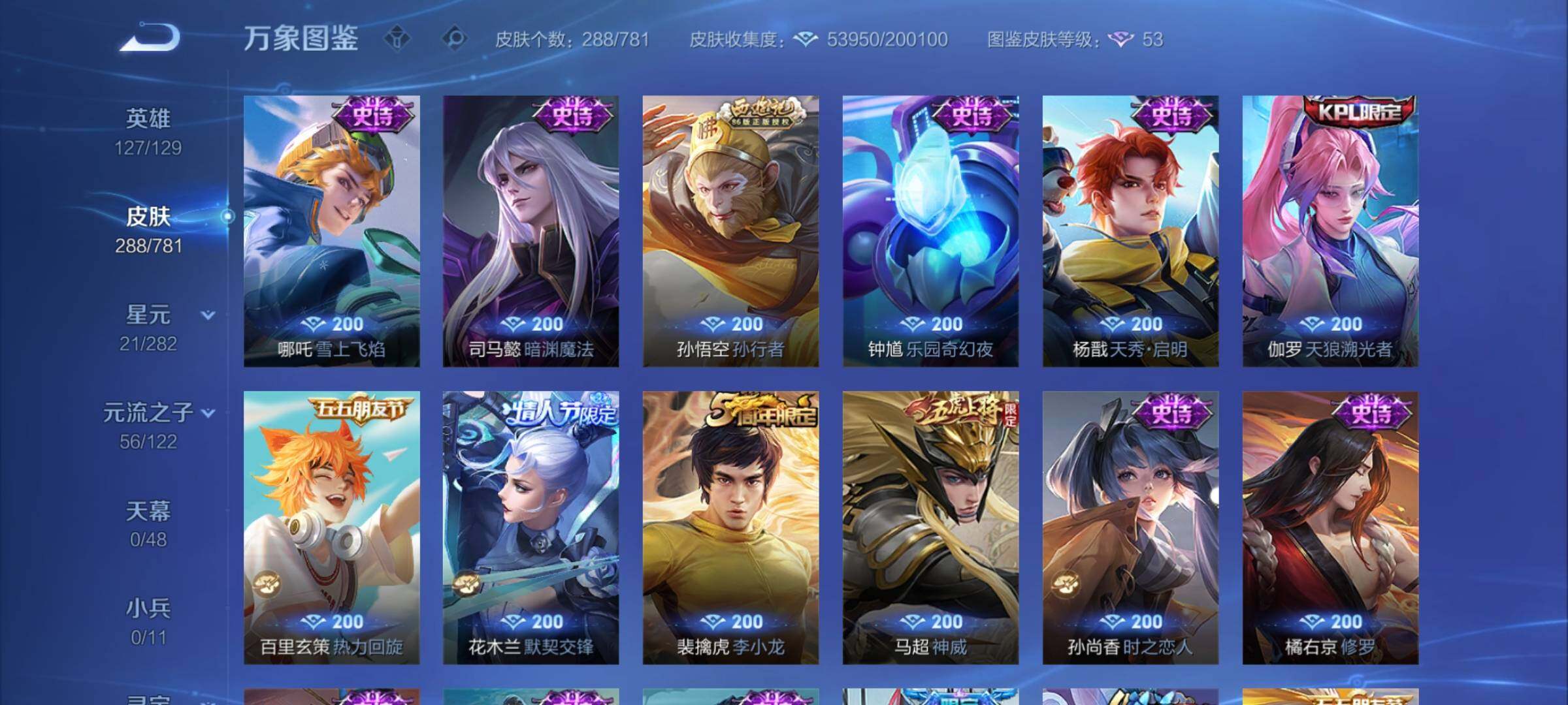 可换绑【极品高级质量高性价比·公孙离无双·吕布韩信典藏·3珍品·马年狄仁杰关羽貂蝉云缨·情人节花木兰·画中仙·浮生妄·白虎志·神威·多传说限定质量号】2星传说,21按键,10王者印记,100五级铭文,可二次BX4748,安卓Q-V8-288皮肤-2典藏皮肤-1无双-3珍品传说-47传说-80史诗