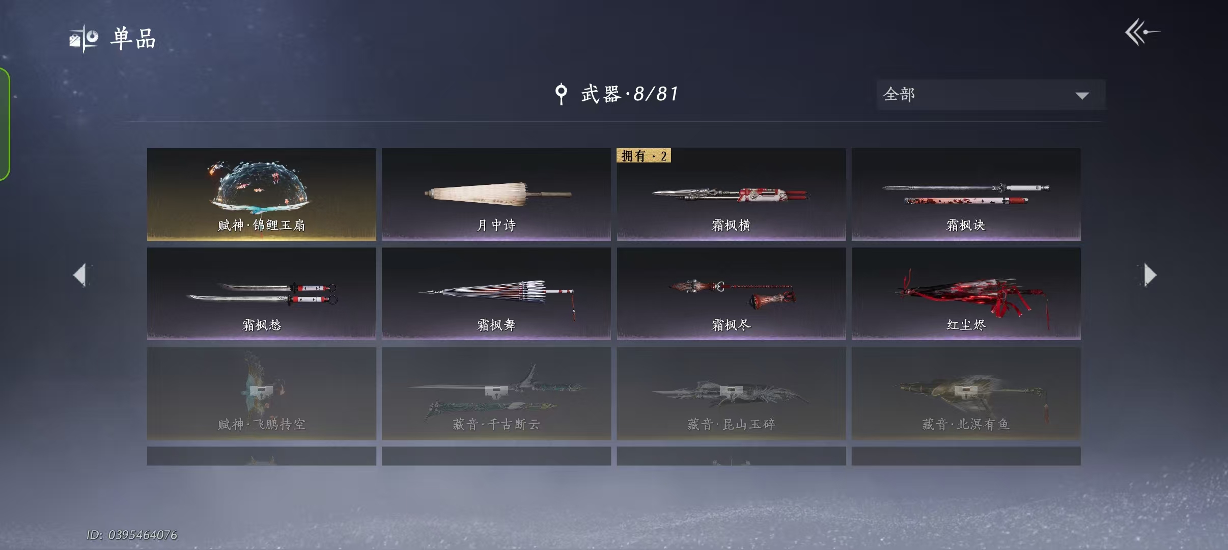 成品霖霖号 心法全六重 武器外观 武器特效都有 一个金色武学有两个258 一个金色头发 诚心出 急