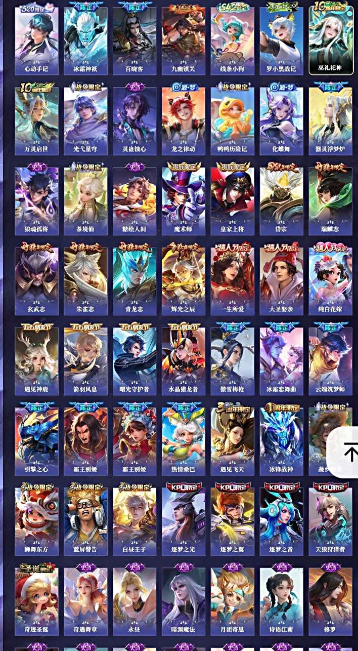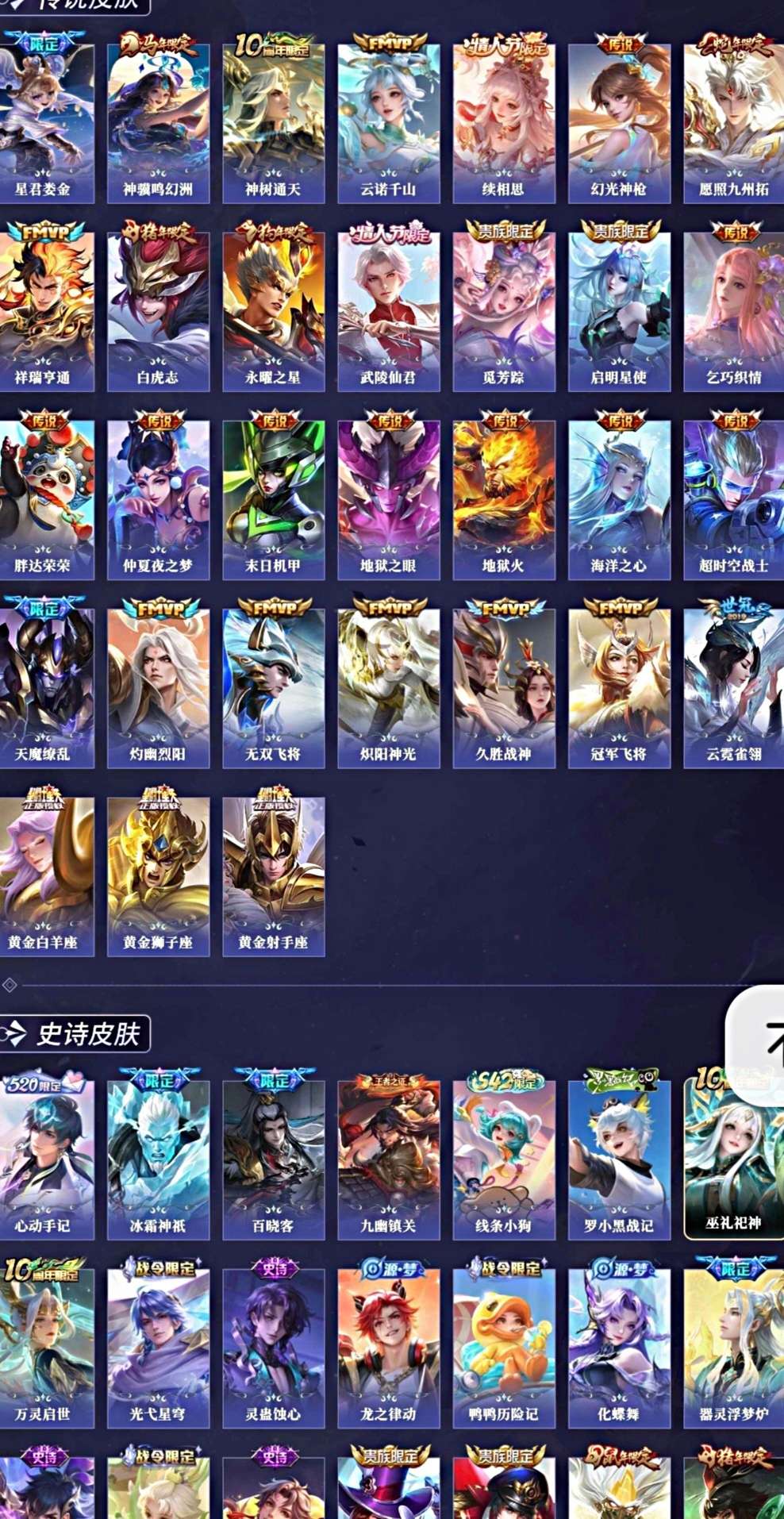 贵族无双10 荣耀典藏6 无双6 珍品传说3 星元皮肤4 传说皮肤31 史诗皮肤104