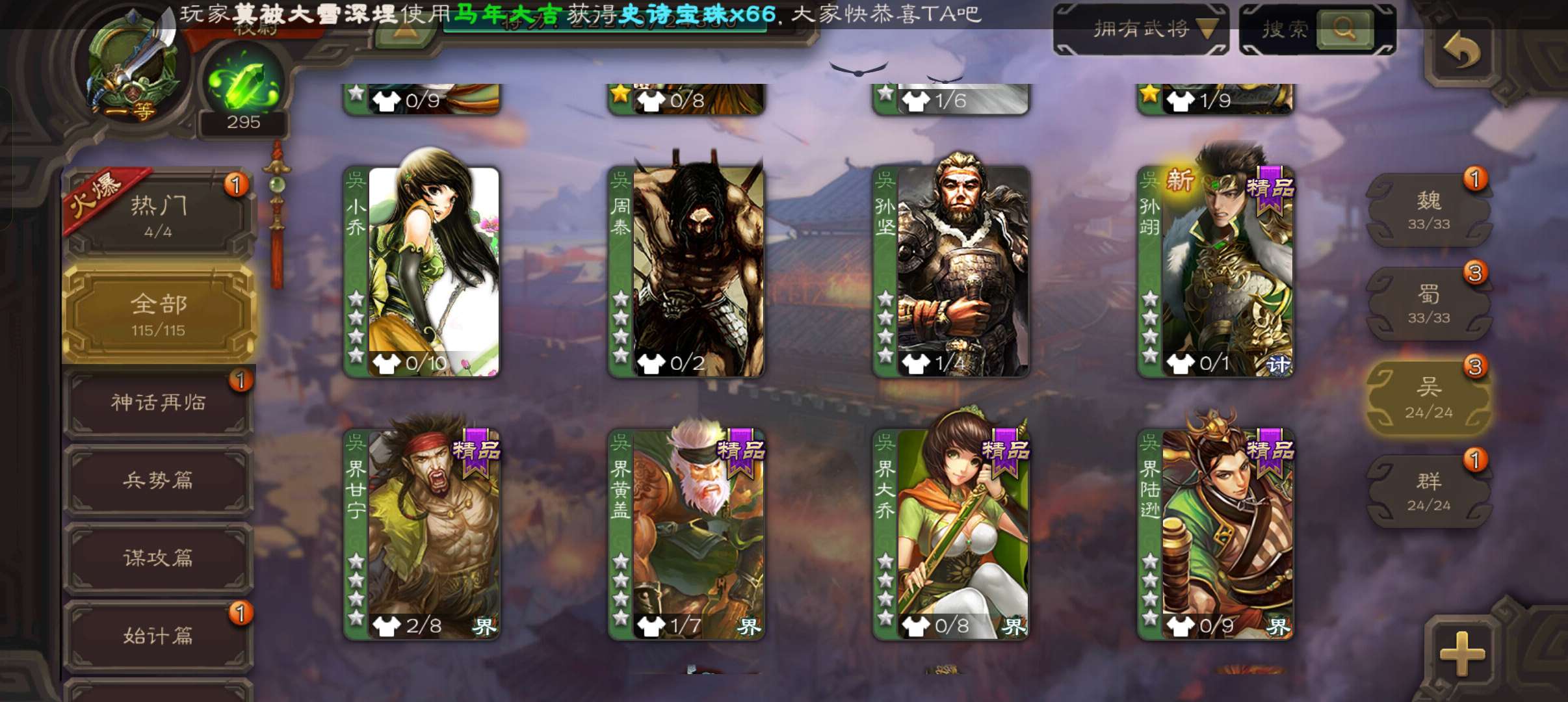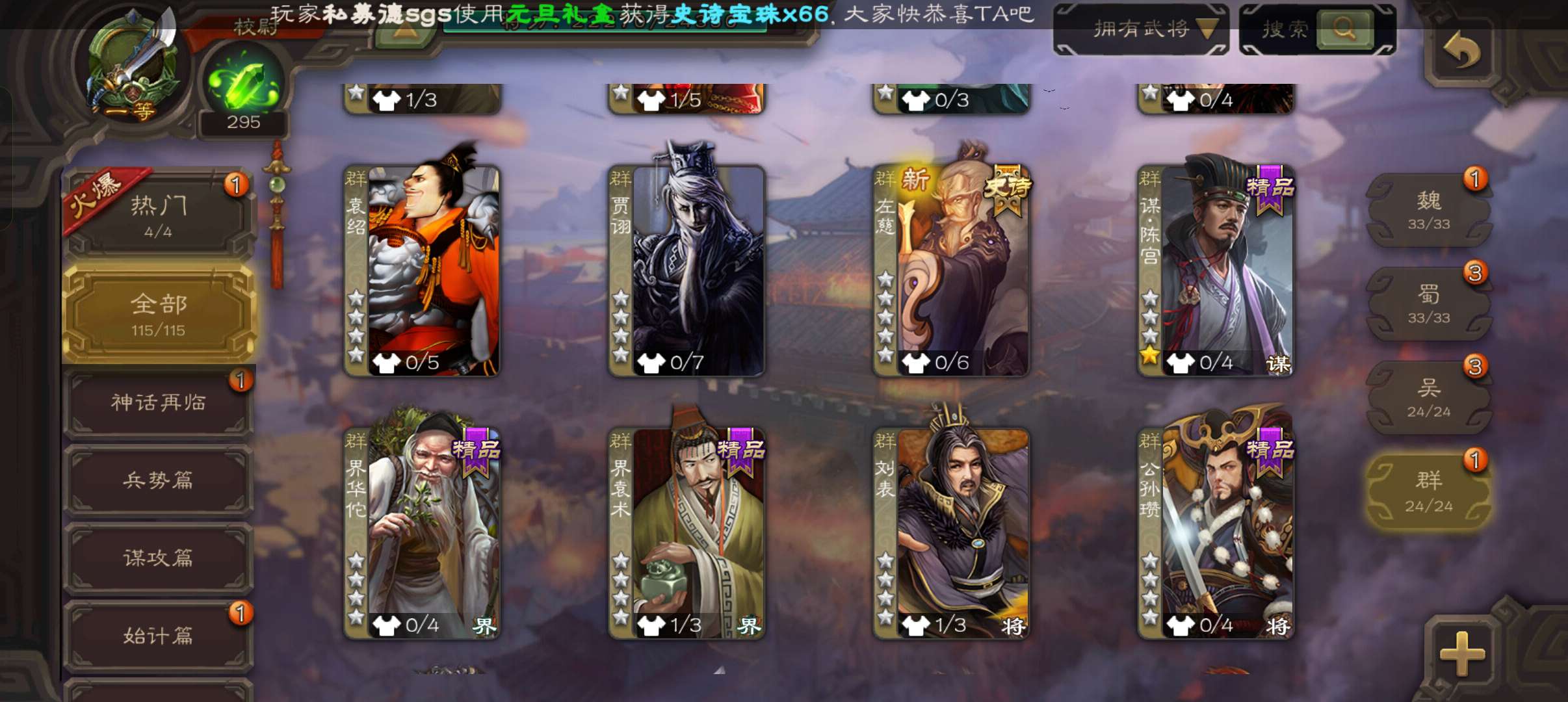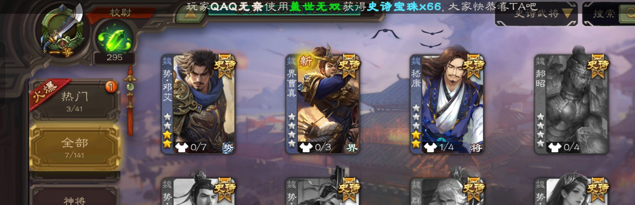 史诗武将数量: