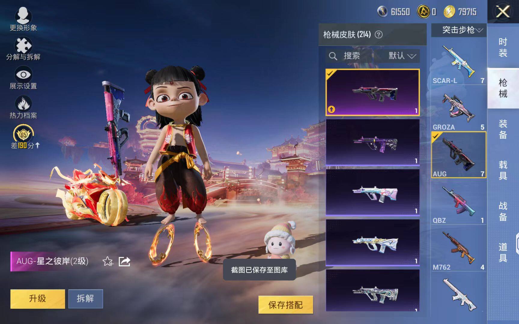 安卓 手Q-1神装-5粉装-14特效枪-2载具-5粉色飞行器-59892热力值-8王牌印记-116套装-214枪皮