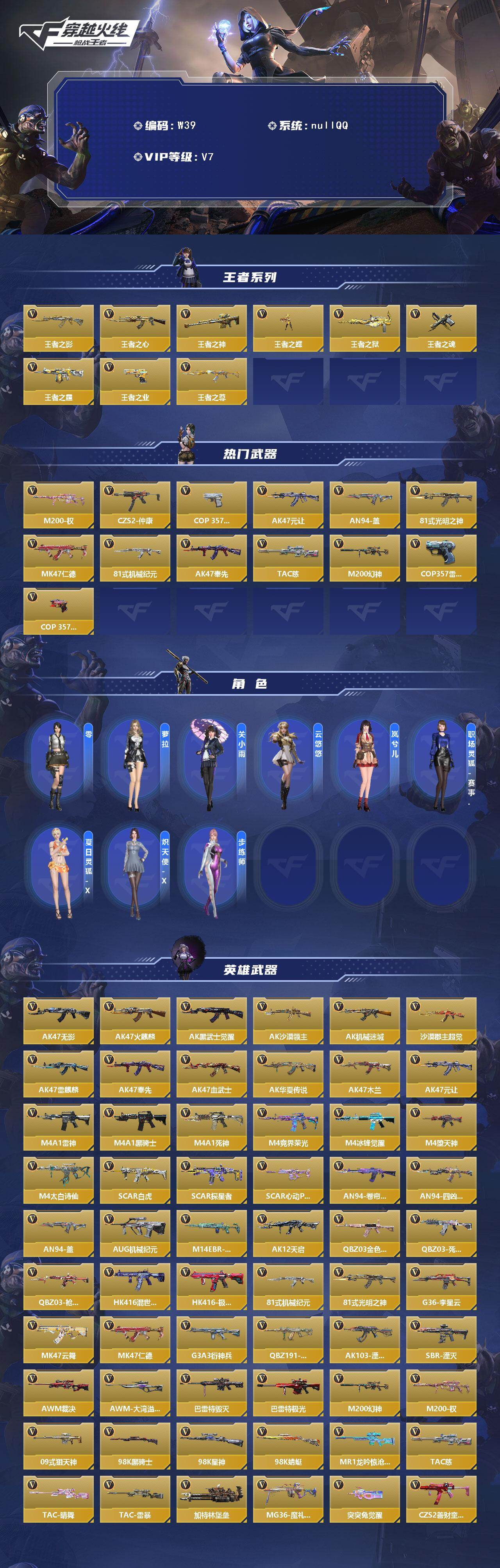 iOS/权/奉先+无双/元让/仁德/慈/王心/王影/王尊/王神+女团/幻神/王狱/王蝶/王霆/王魂+女团/王业+冰霜奇迹/COP堕天神/COP雷霆/COP安琪拉/-166英雄武器数