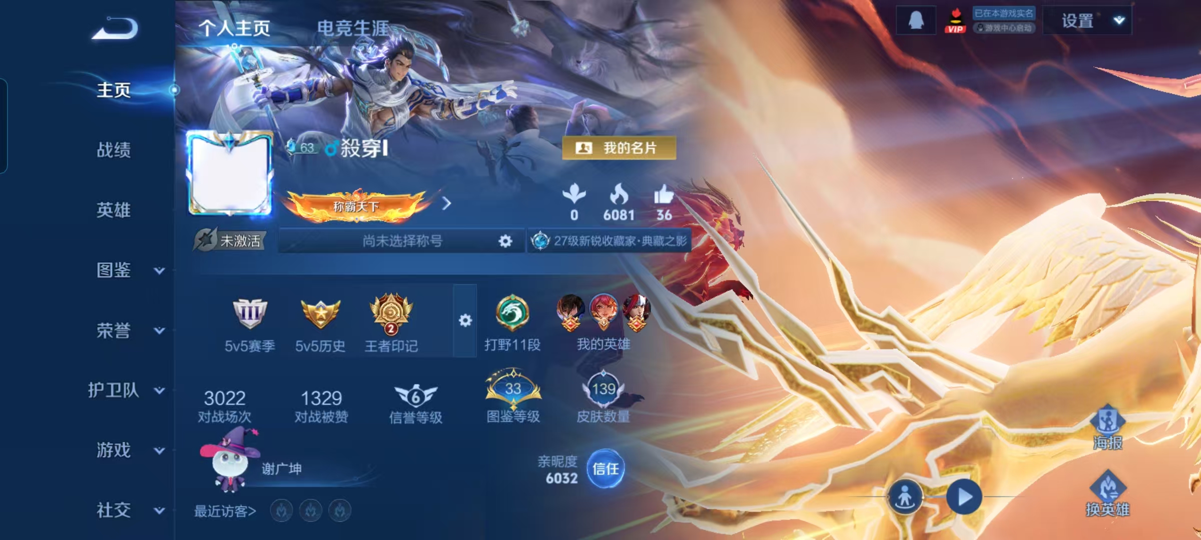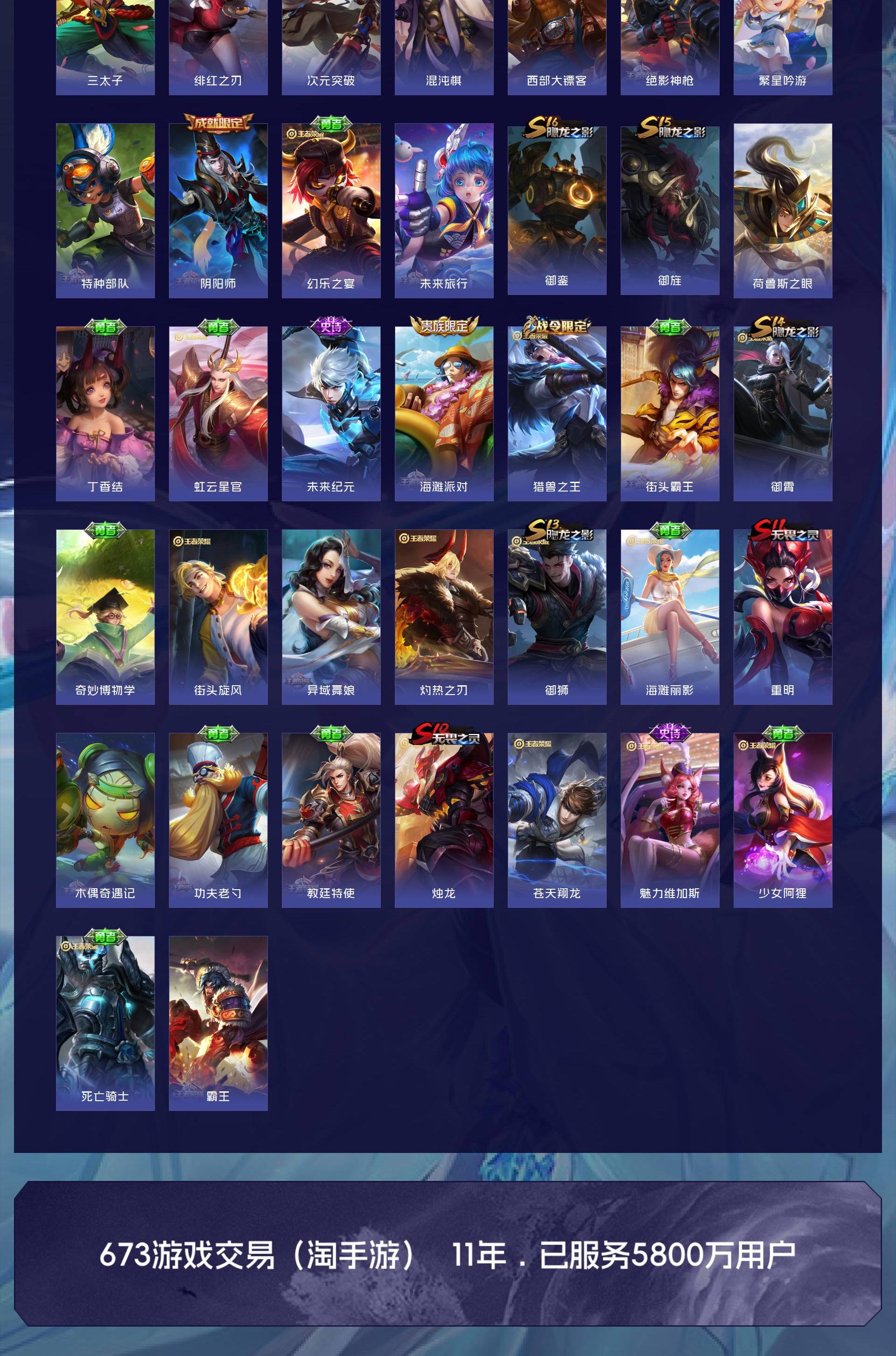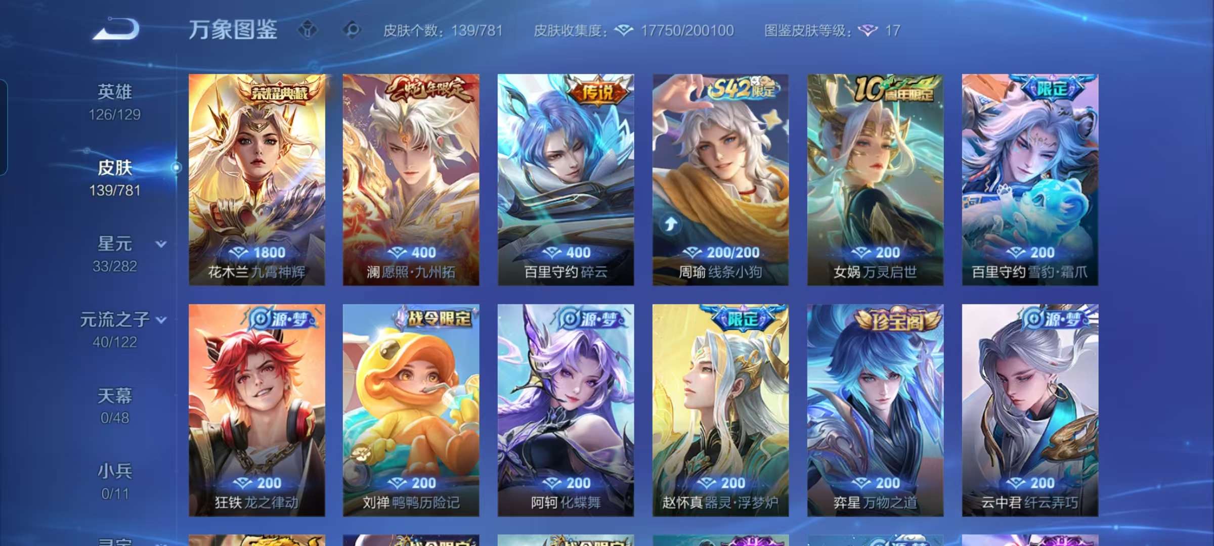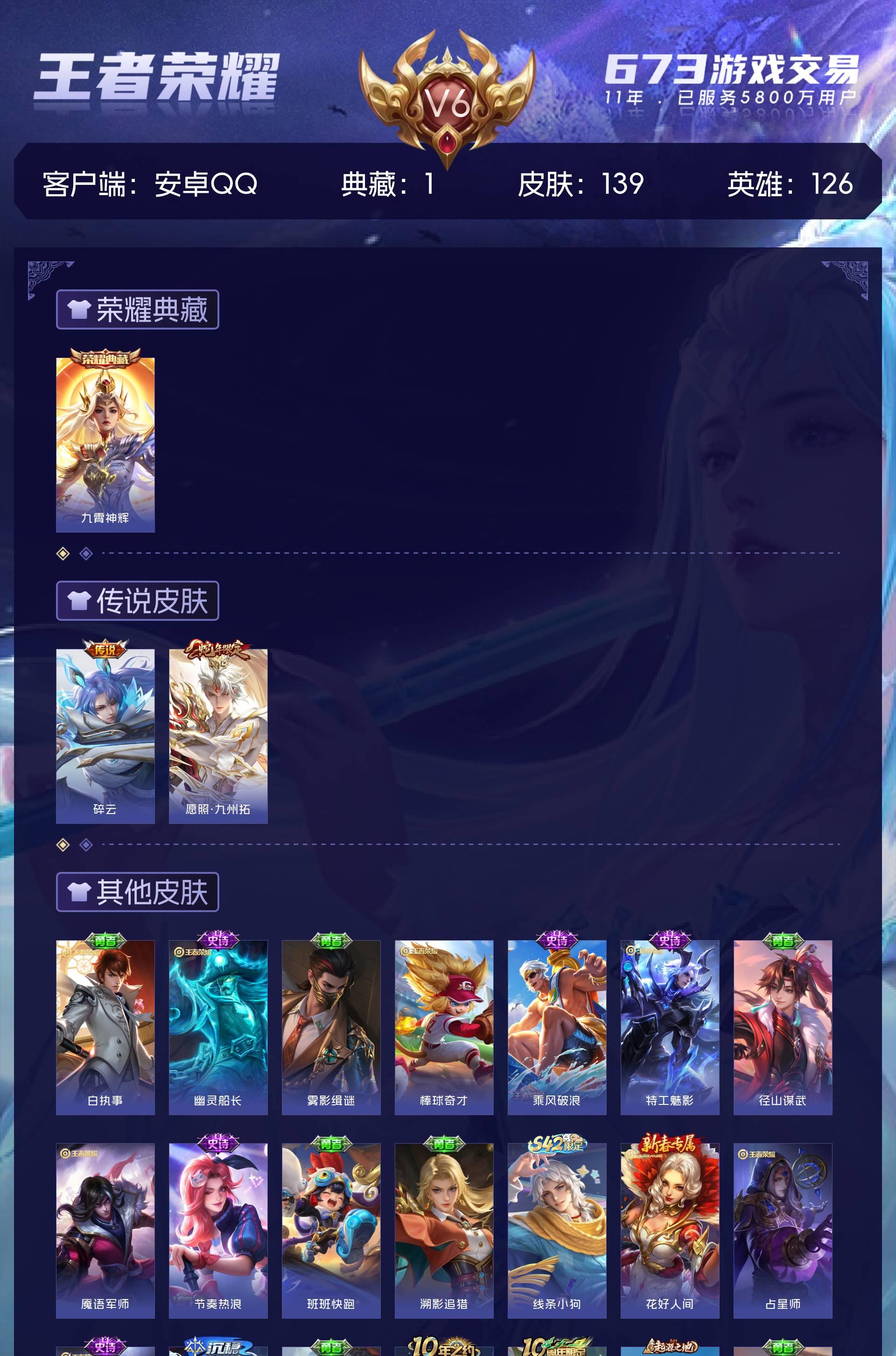 V6 皮肤139 英雄126 永恒钻石 荣耀典藏1 传说2 其他皮肤142