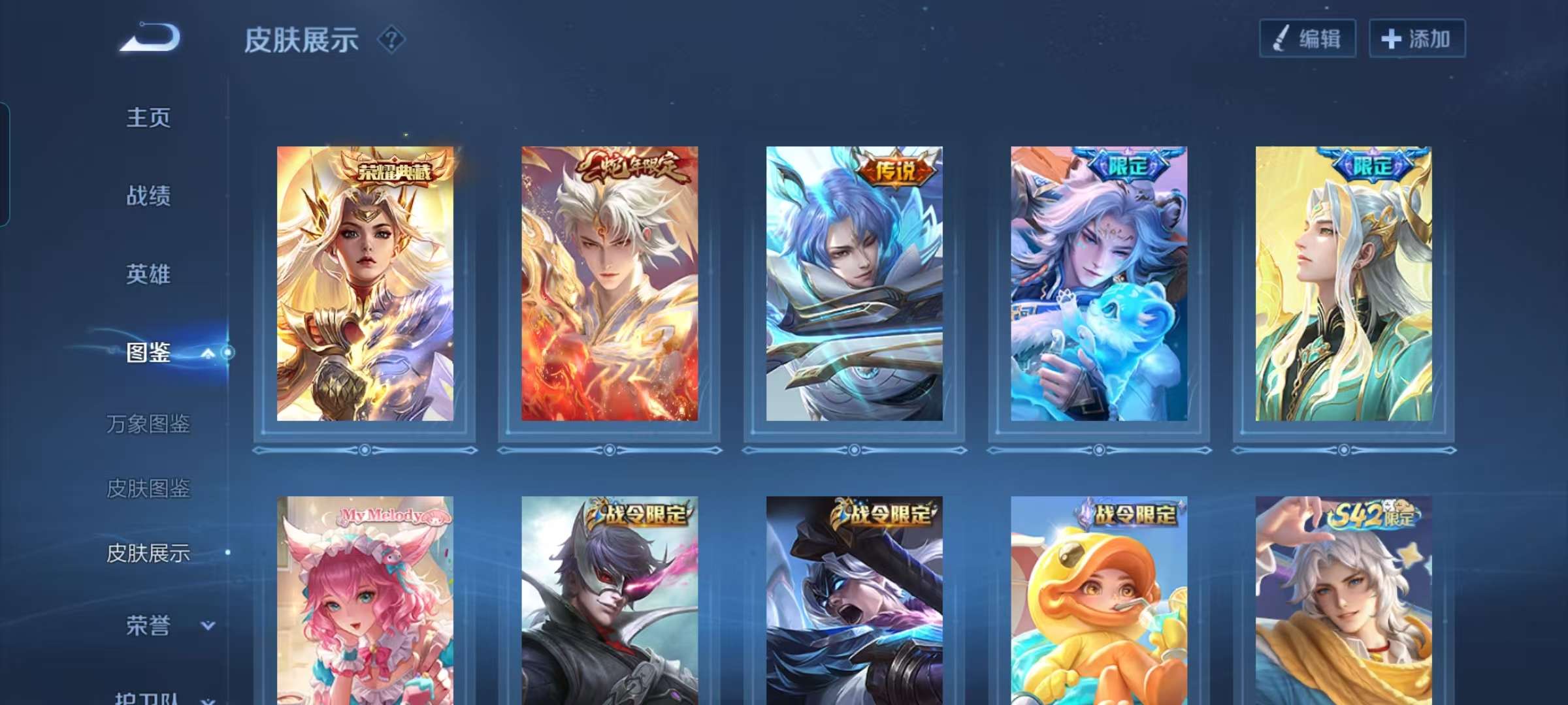 荣耀典藏木兰,百里限定,澜年限有按键。多个战令皮肤